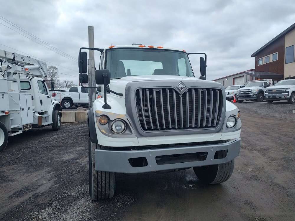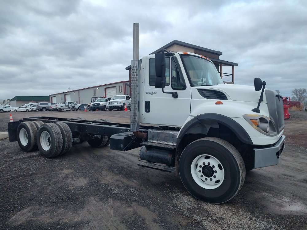 2008 International 7600 Cab and Chassis, 370 horsepower ISM Cummins diesel engine, Allison 4560 automatic transmission, 113,000 miles, 66,000 GVW, double frame, Hendrickson Haulmaxx 46,000 pound rear suspension, 20,000 front axle, 155" cab to trunnion, 250" total frame, air to the rear, pintle hitch, good tires, former municipal truck 208-734-3434