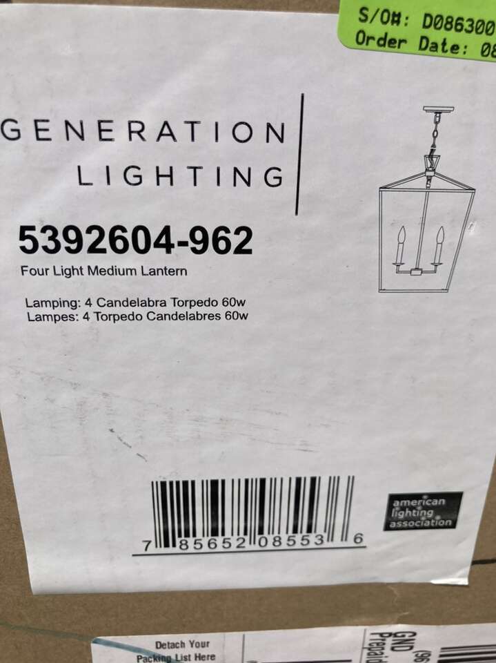 4 light pendant in brushed silver by Seagull Lighting. Measures 17” long x 17” wide x 24.5” tall. Weights 6.8 lbs. Two separate lanterns available. Brand NEW in original boxes. Ordered from Lighting Design in Draper by an interior decorator for a home remodel in 2023. Homeowner elected to go with another style.