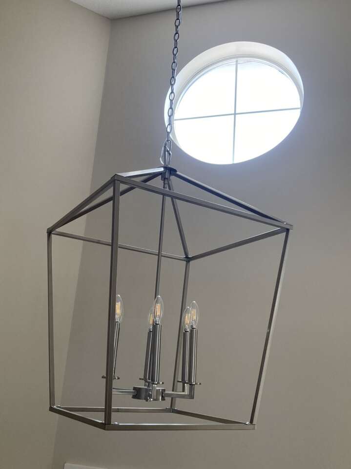 Would be great for an entry way, over a dining room table, or used as pendant lights over a kitchen island as a set. A picture of the exact same lights installed is shown in the attached picture but is larger in the entry way as shown.
