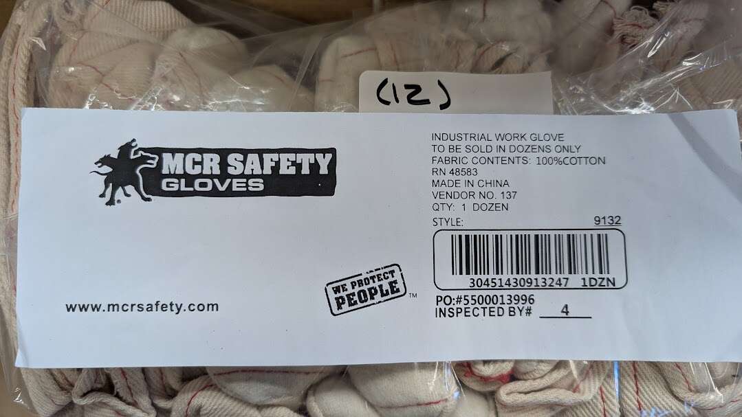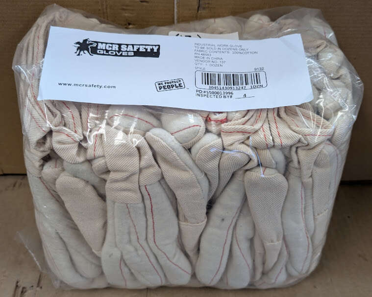 VenmoMCR SAFETY Knit Gloves: L ( 9 ), Glove Hand Protection, Uncoated, 605°F Max Temp, Cotton, 12 PK