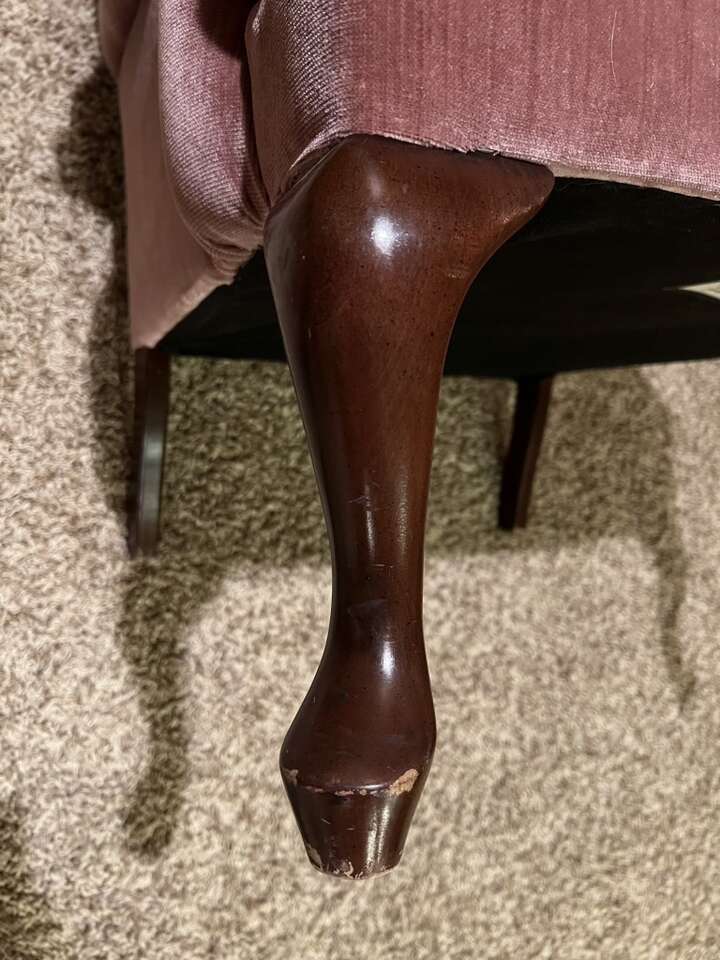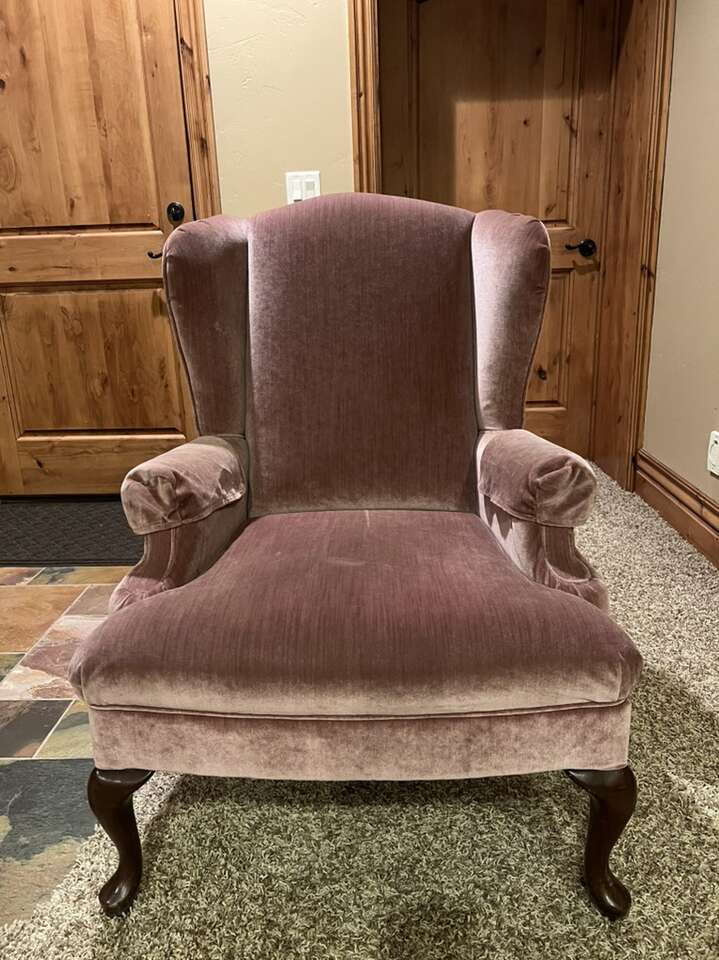PayPalBlush Pink velvet chair. Great condition with a few small blemishes on the feet. No stains. Not looking to move much on price.