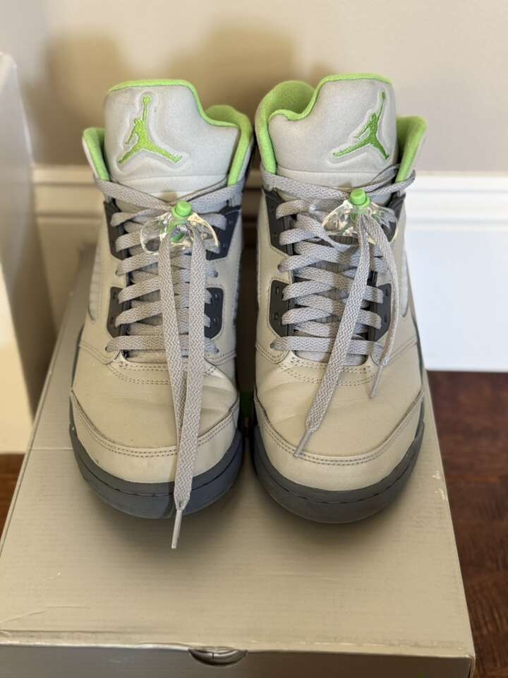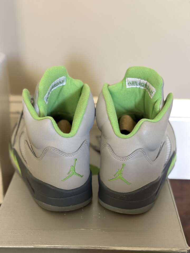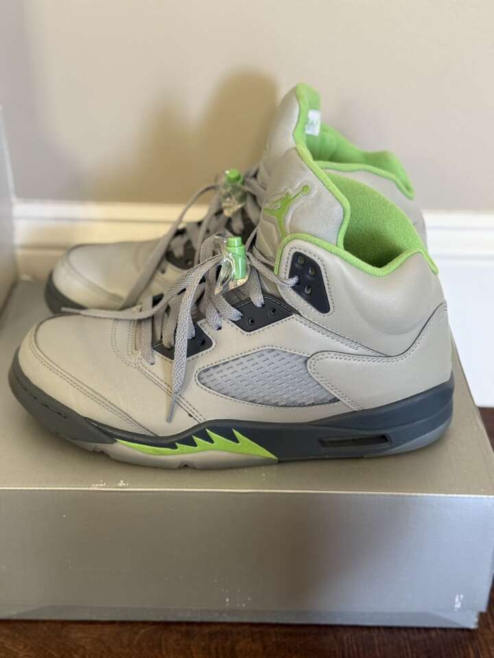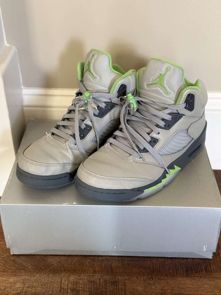 VenmoAir Jordan 5 Retro Silver/Green Bean-Flint Grey in size 9.5 for sale in good condition. GOAT verified/100% authentic. Smoke free home. Text preferred.