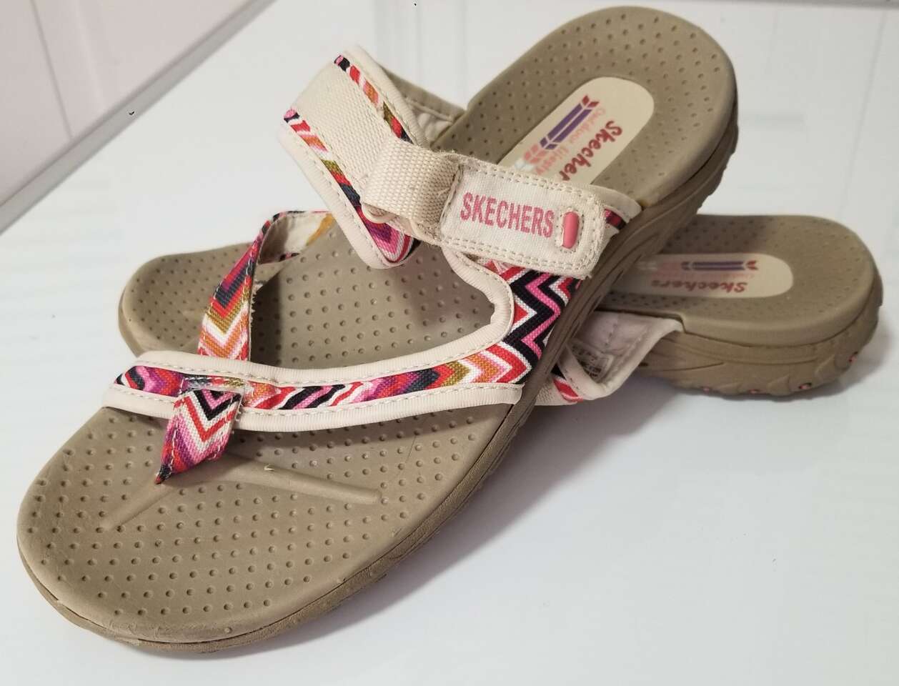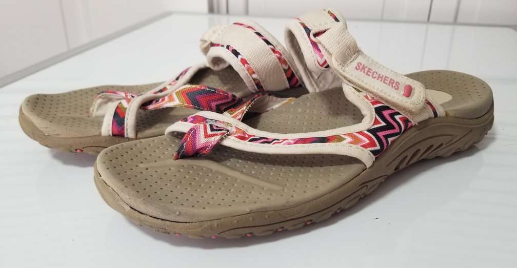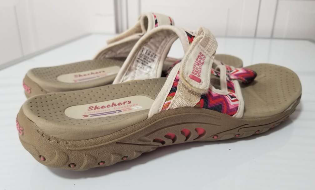 CashAppSlip into effortless style and comfort with these Skechers Reggae sandals, a perfect blend of casual elegance and comfort. Crafted with a durable nylon upper in a rich brown hue, these sandals feature an embroidered logo accent that adds a touch of sophistication to your everyday look. The fabric lining and insole ensure your feet stay cool and comfortable, making them ideal for warm-weather activities or just casual wear.