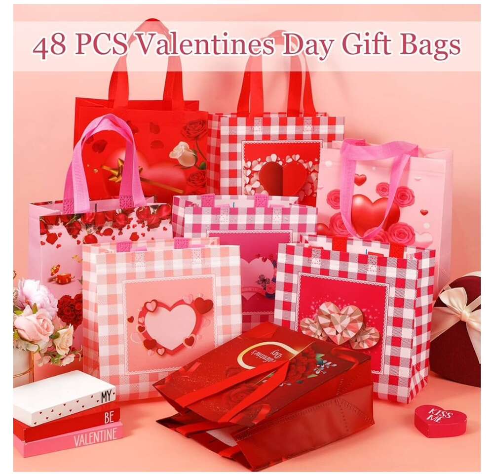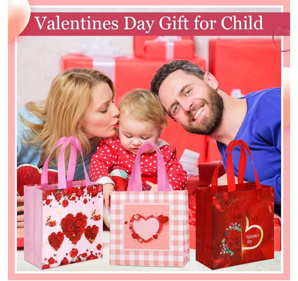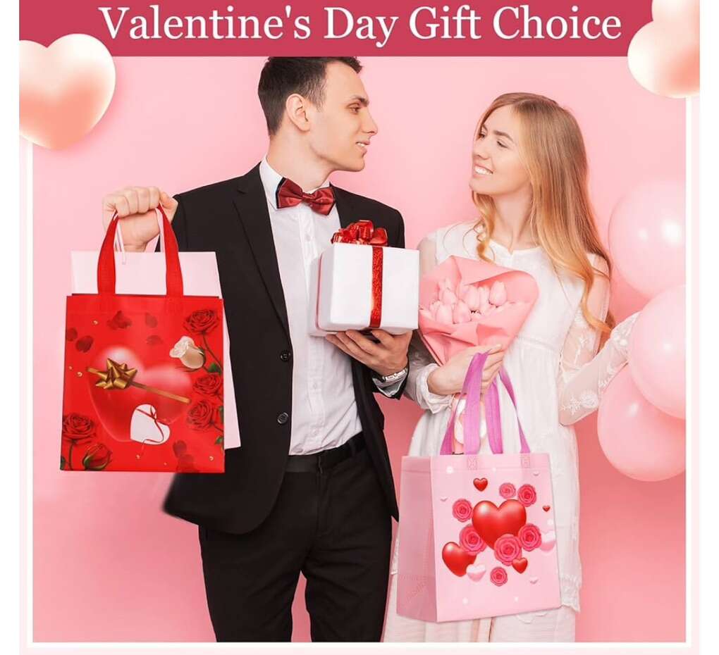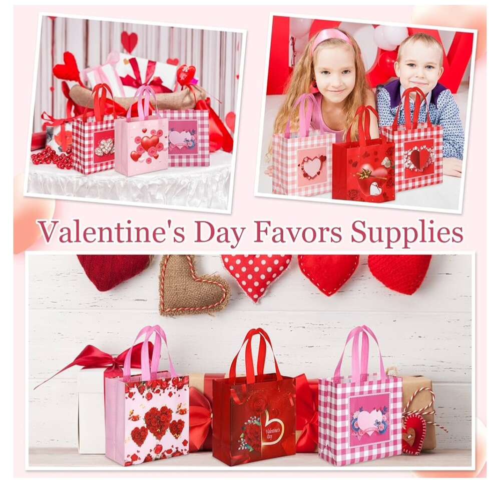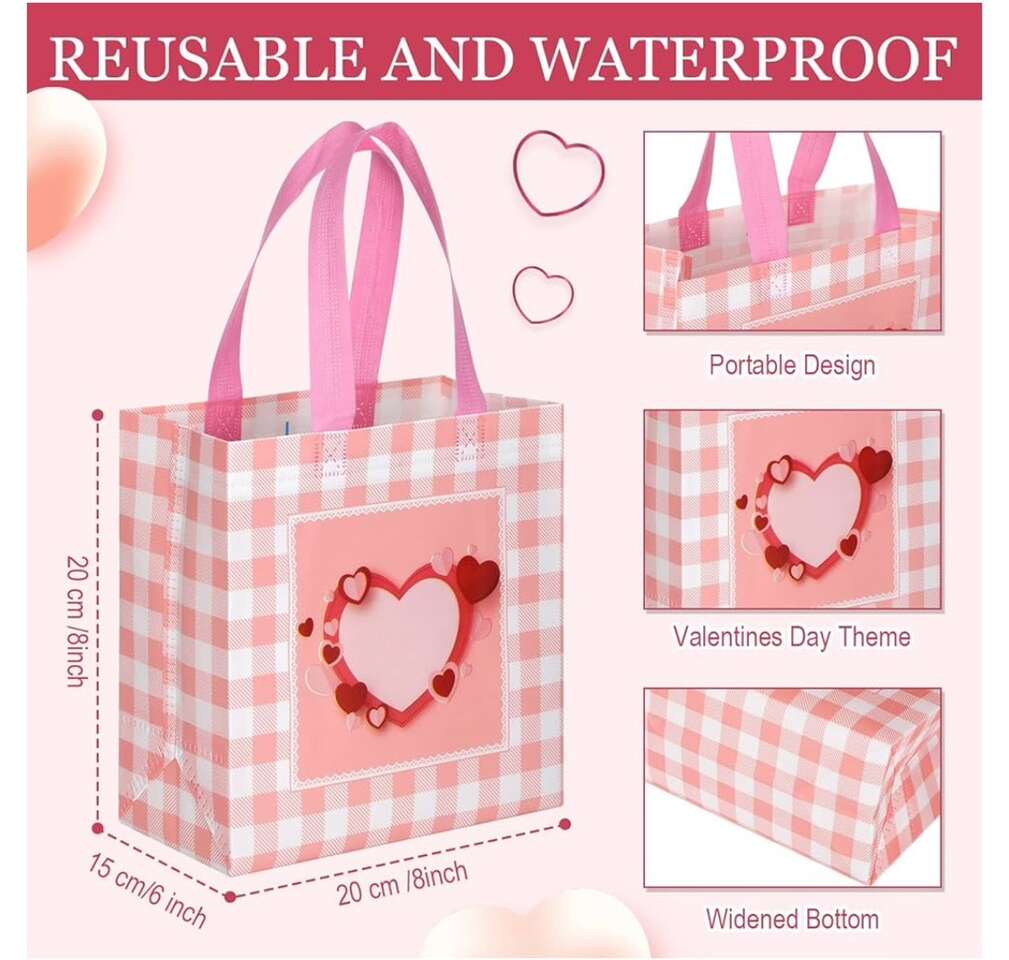 Valentines Day Non Woven Gift Bags Valentines Day Reusable Treat Bags with Handle Valentines Day Goody Bags Valentines Bags Waterproof Tote Bag for Gifts Wrapping Party Favor Supplies
