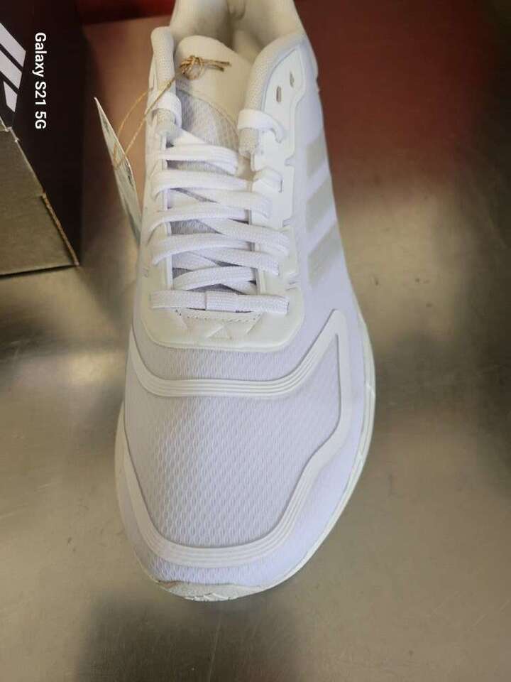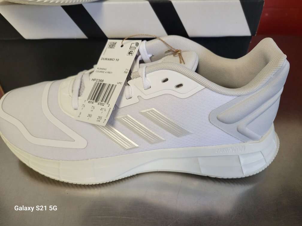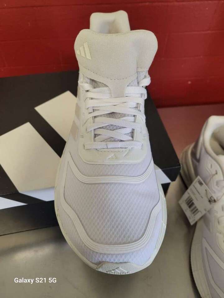 New! Adidas DURAMO Running Shoes. I have a pair in Size 8 and in size 9. white on white.