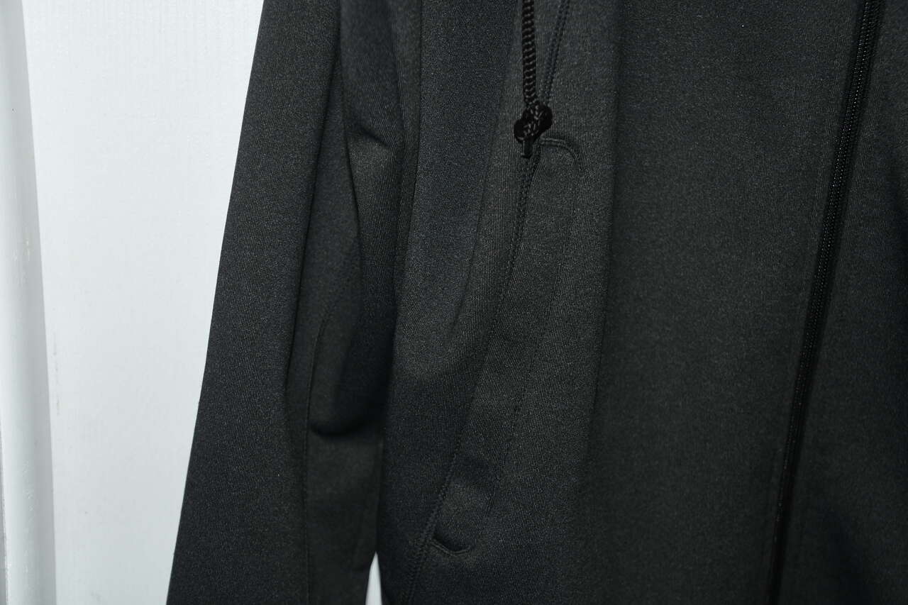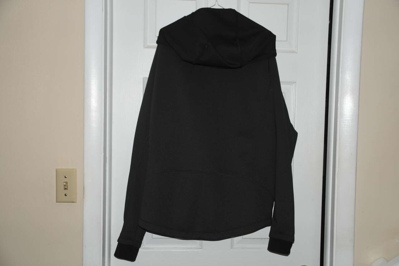 This TESLA UNISEX CHARCOAL GRAY HOODED JACKET is Size L. It is about 23" across the chest area. It has 2 zippered pockets. It is CLEAN! It is 91% polyester & 9% polyurethane. It is machine washable. Our home is smoke free. Questions??? Please ask. We are located in Plain City. Cash only please.