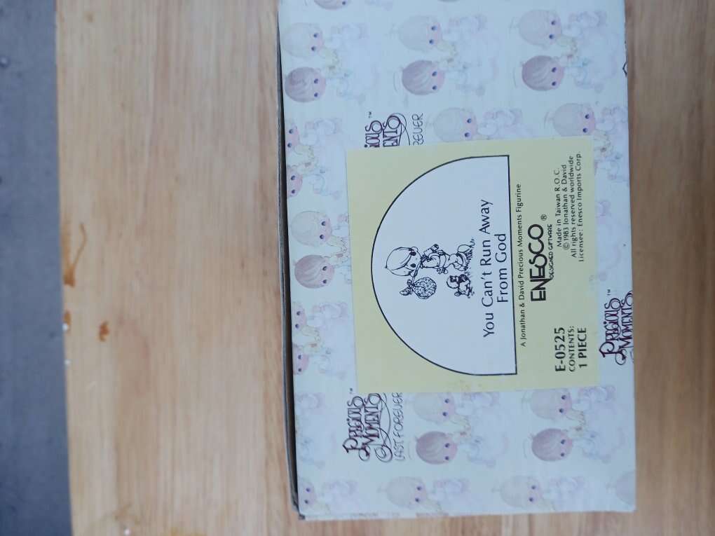 Precious Moments. You Can't Runaway from God figurine. $10. Cash only. Smoke free and pet free home. Meet in the Logan area. I have other Precious Moments figurines I'm selling, see my other listings.
