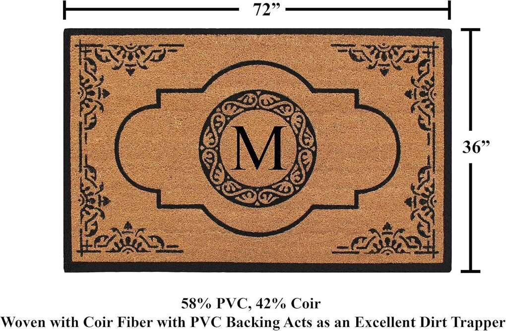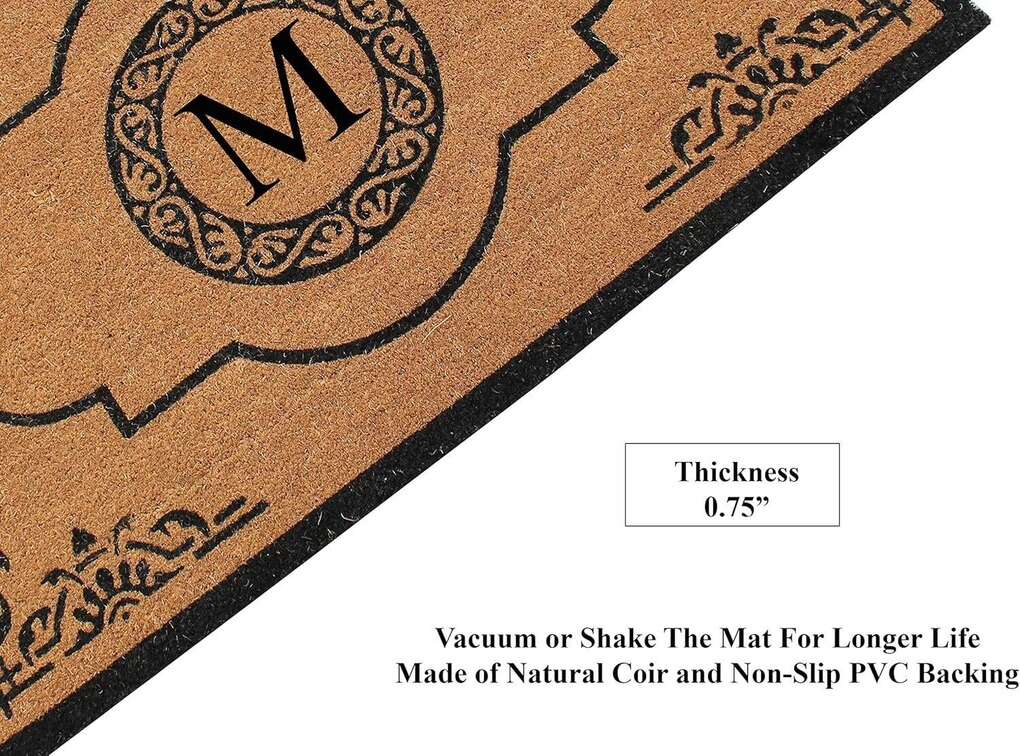 NEWLY DEVELOPED ANTISHED TREATED MONOGRAMMED FRONT DOOR MAT: The large doormat is made of natural coco fiber which is treated with anti-shed dyes to minimize shedding the backing is made from high-quality anti-slip PVC which provides an anti- slip surface. This coir doormat has a large coir area to clean and wipe your shoes which keeps your house clean.