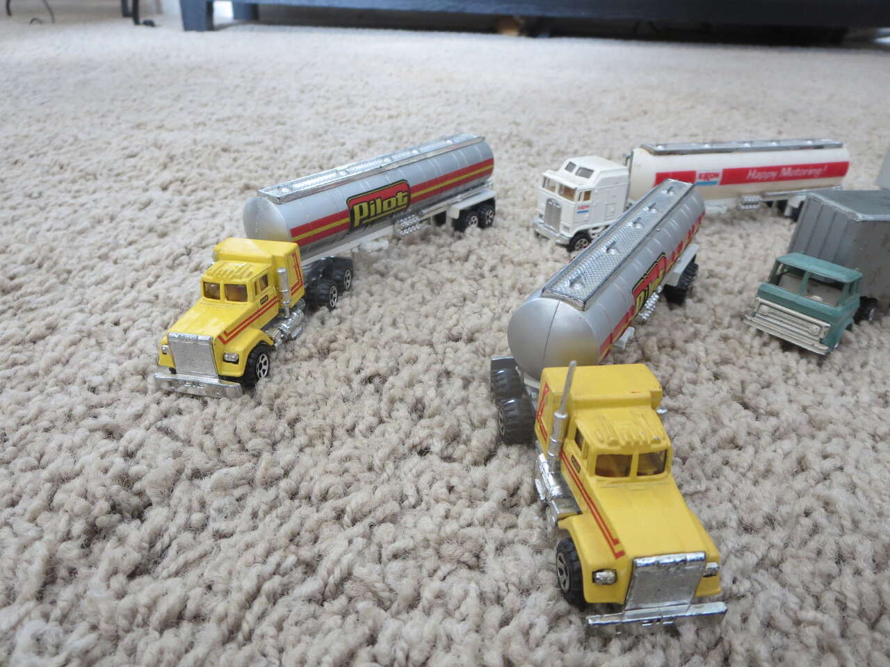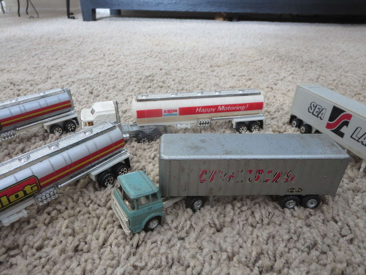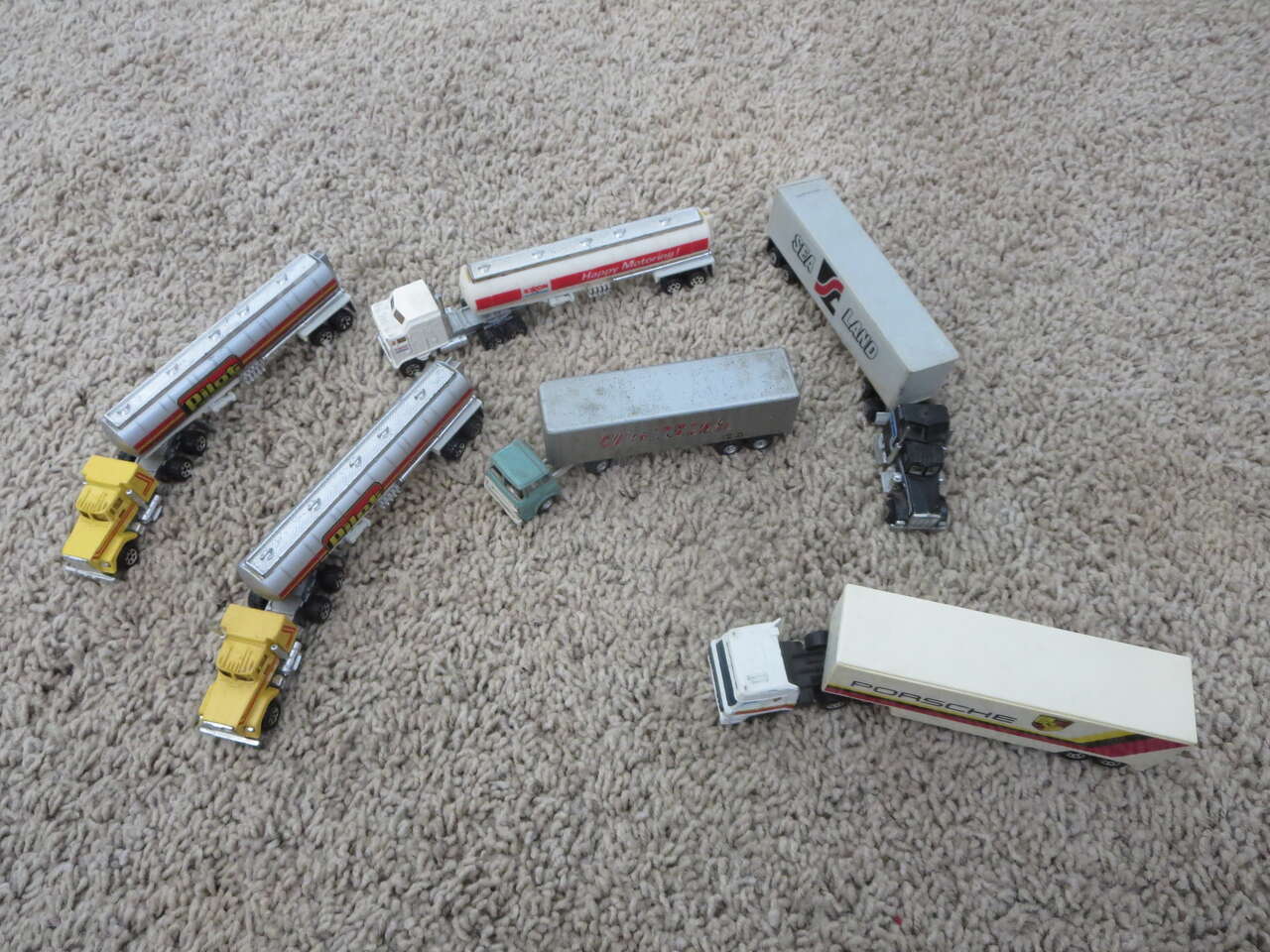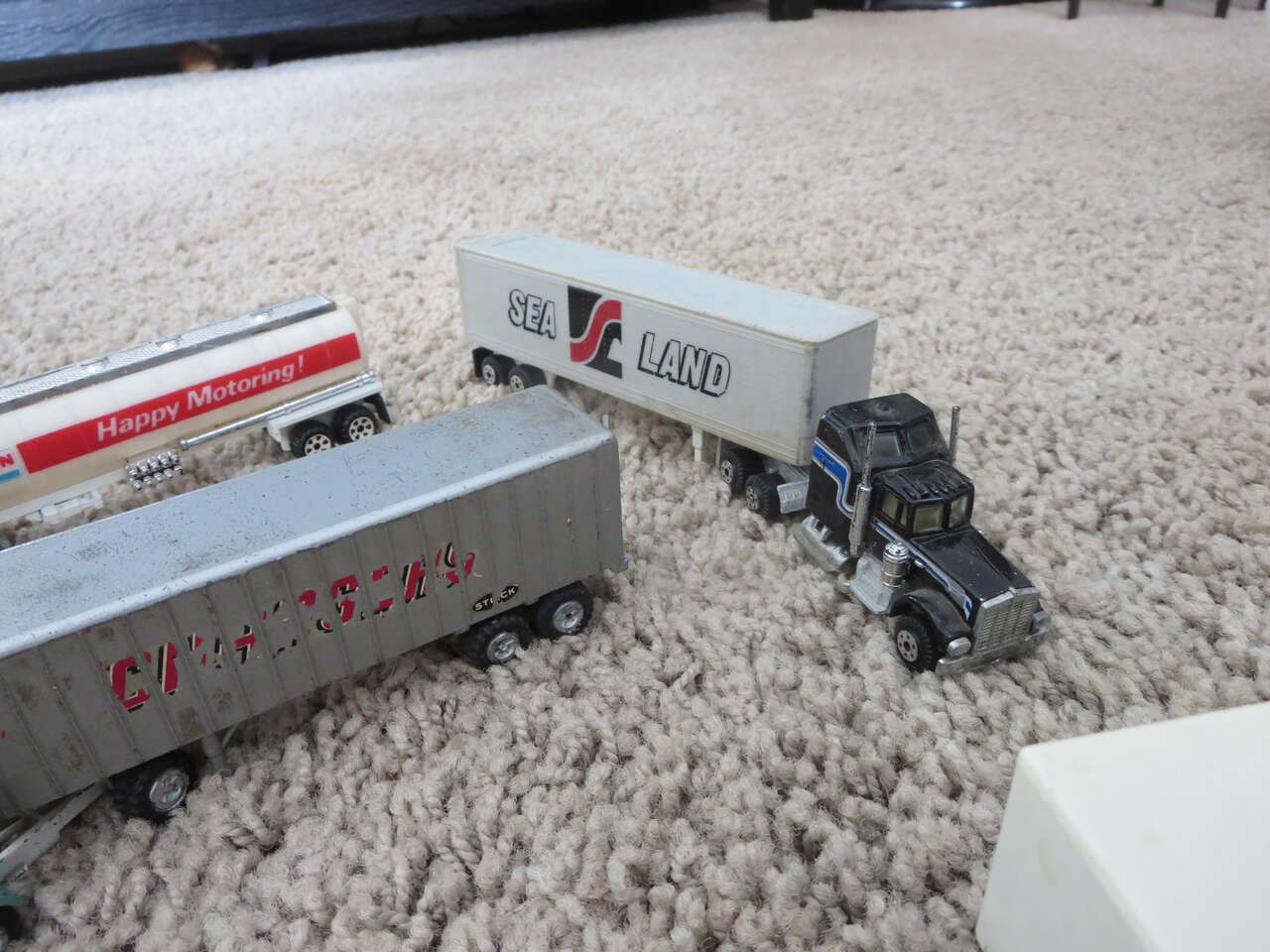 I have a. Vintage Road Champs 18 Wheeler Tractor Trailer Semi Cabover Truck Lot of 7 $15 each or $65 for all For sale call or text only thanks for looking D.