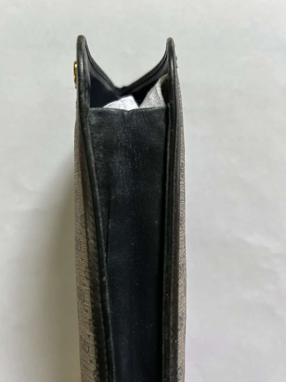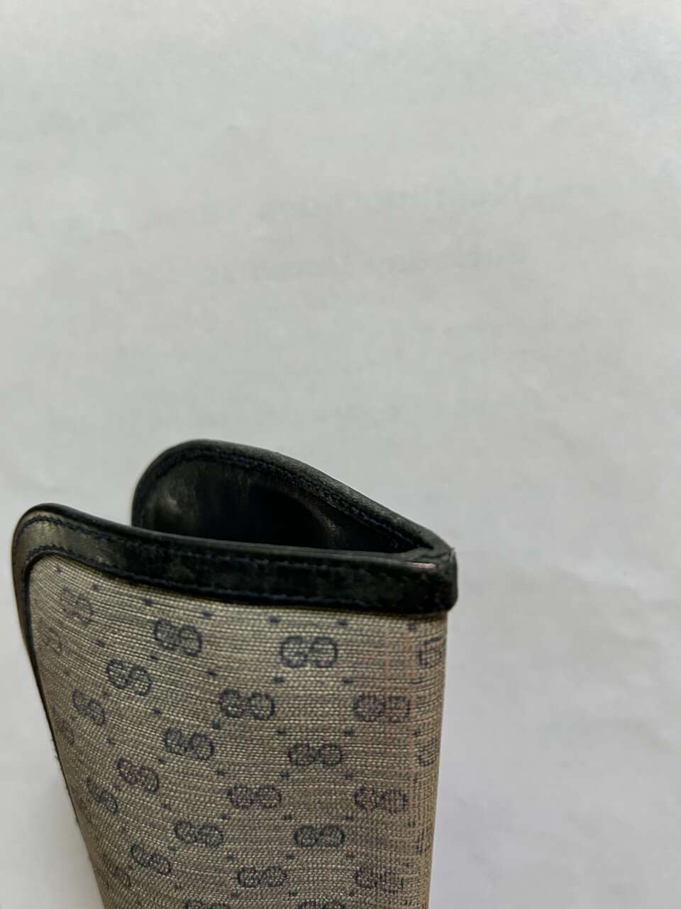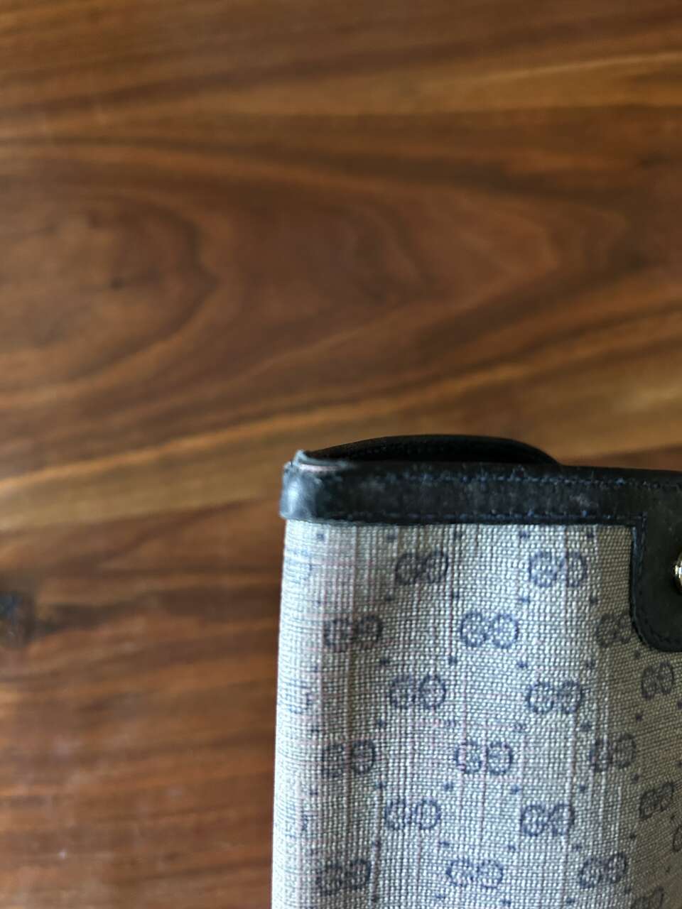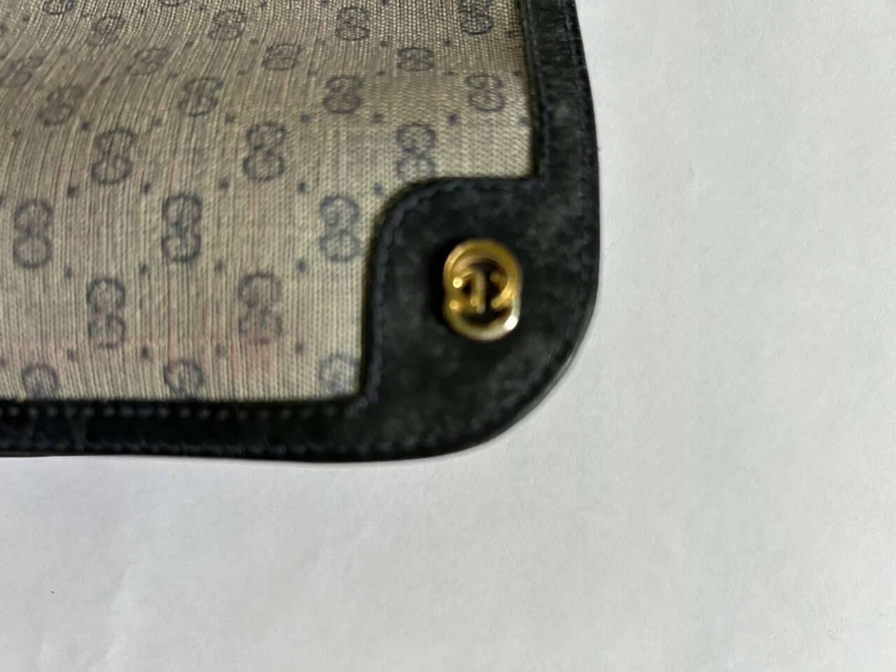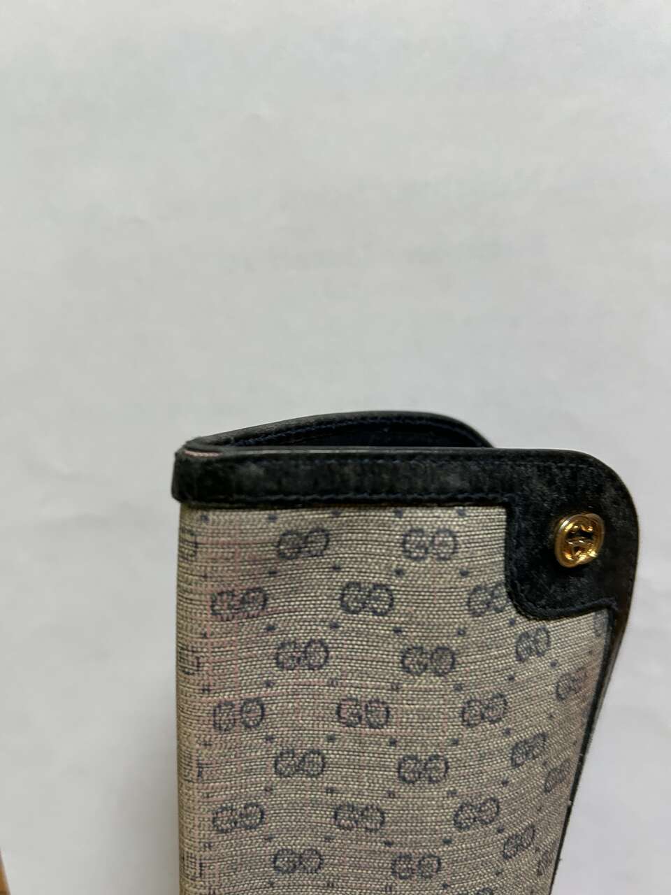 VenmoGucci Monogram Glasses Case in Navy Blue. There is natural wear on leather trim but still good condition – just some worn down on the top left corner. Canvas is in great condition but there is some pink-ish color transference on both sides - not sure where it came from, possibly from being in my Mom's red purse. It's super light and I don’t think you would have noticed unless I mentioned it. Gold stamp inside reads GUCCI MADE IN ITALY. Mom purchased in 1980s or 1990s. Measures 7L x 3.25W x 1D