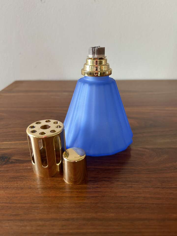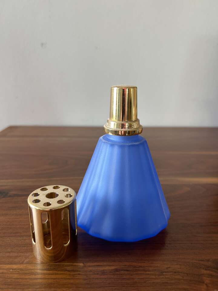 VenmoLampe Berger Paris Aroma Oil Lamp in Blue Frost with gold snuffer cap and open diffuser cap. I’ve had this Lampe Berger for a few years but haven’t used it in a while so I thought it would be a good time for it to move to a new home. Still in good condition with no cracks or chips. Wick is also still in good condition. Perfume odor in bottle from prior use.