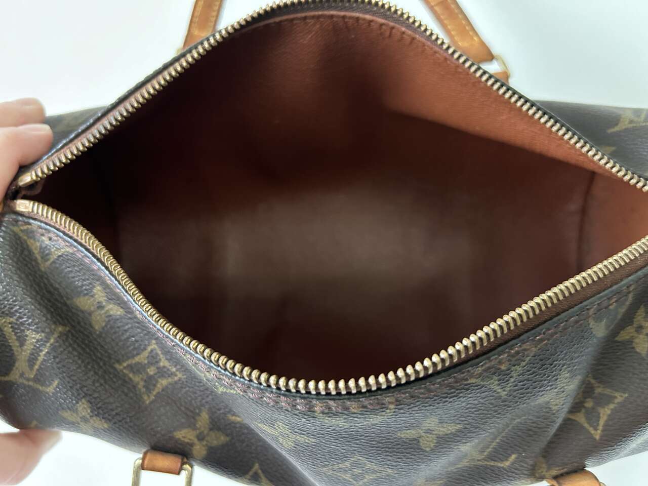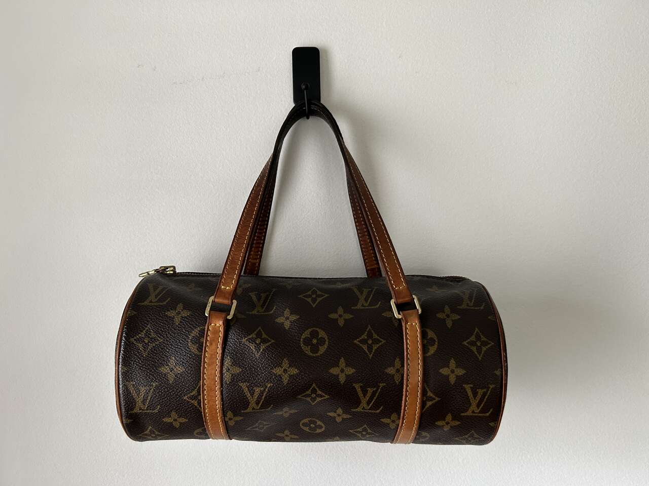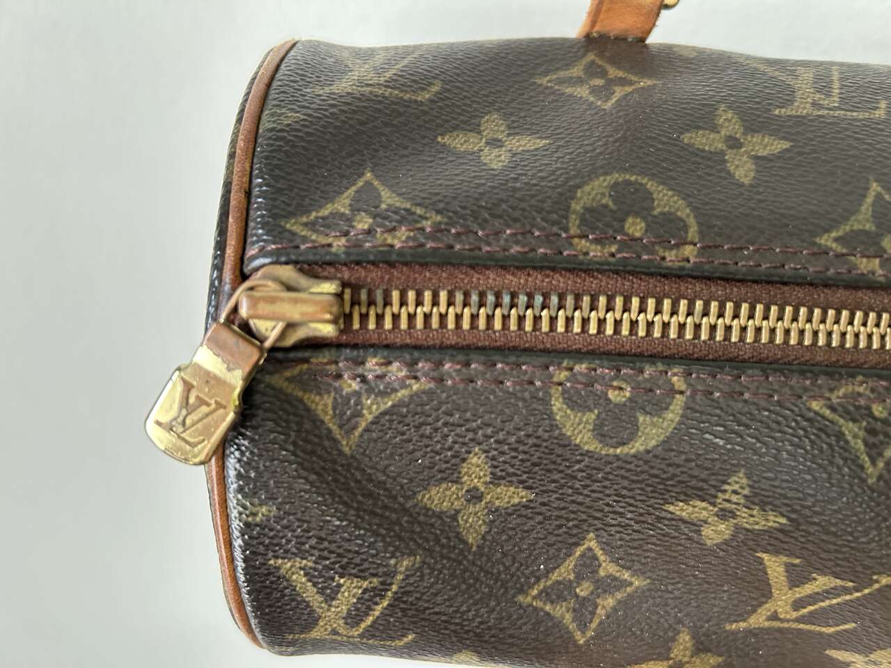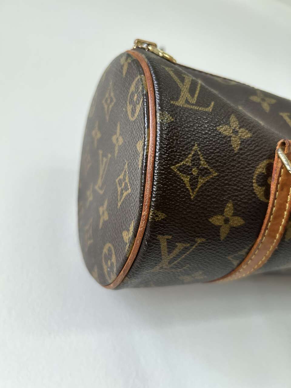 VenmoLouis Vuitton Papillon Handbag Monogram Canvas 26 in Brown. The leather straps have a natural patina. There is natural wear on the leather piping around the rim of the bag and natural wear on the LV zipper pull and zipper (see pictures. There are some marks on the end of the barrel inside on one side (see picture). No cracks found in canvas – great condition. Original dust bag also included. Mom purchased bag for me from Saks in NOLA in December 2004. To prove authenticity, I would include a picture of the stamp on the inside but it's in a location that's hard to reach with a focused camera (right behind the zipper at the very end) --- but the stamp reads SD0024. Measures approximately 11L x 5W
