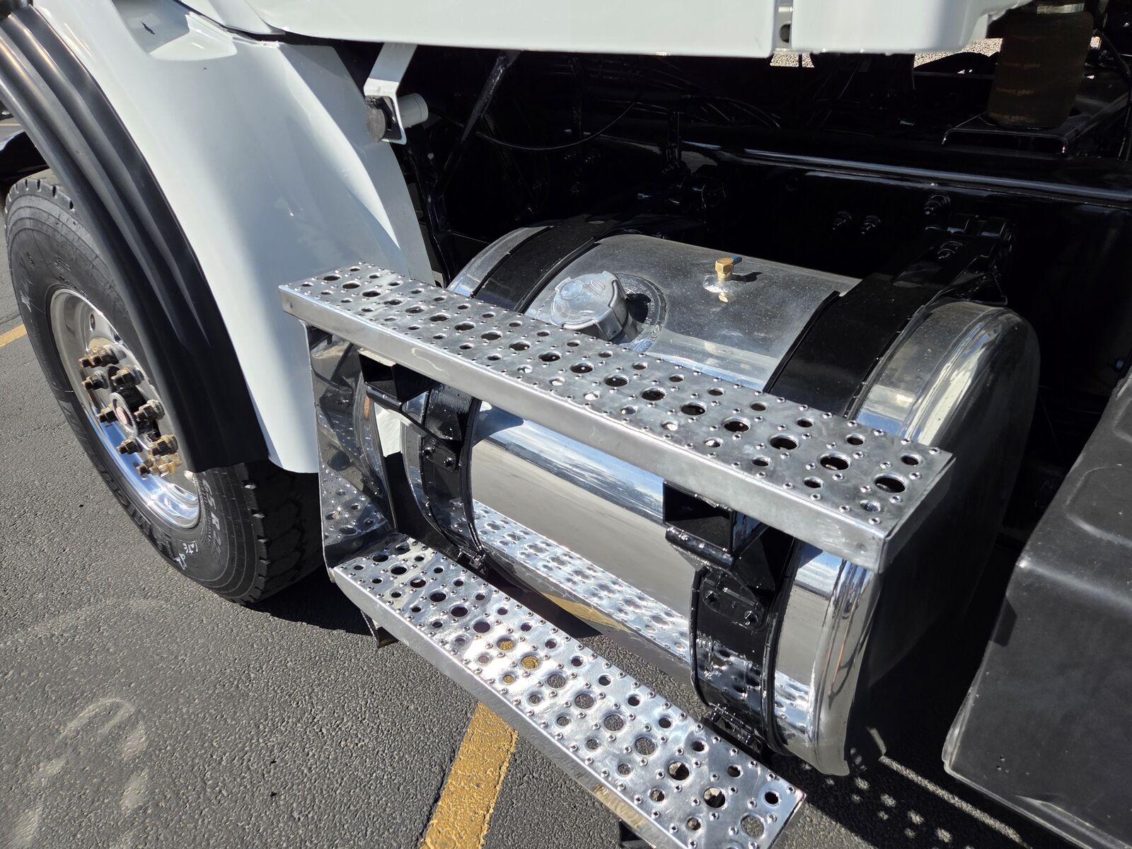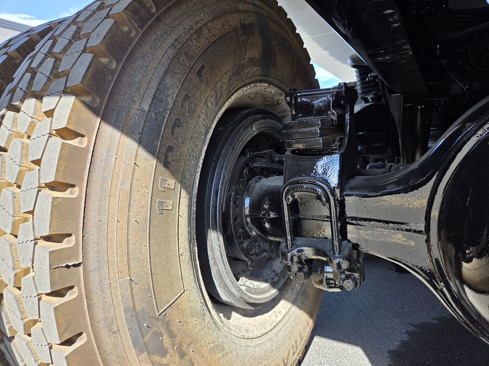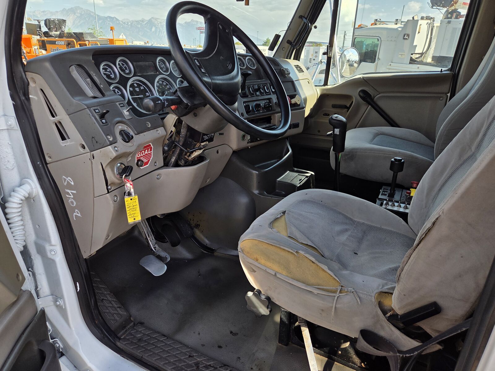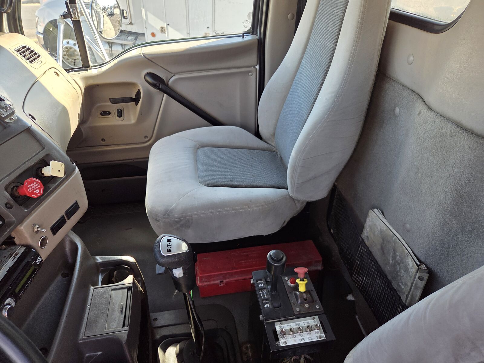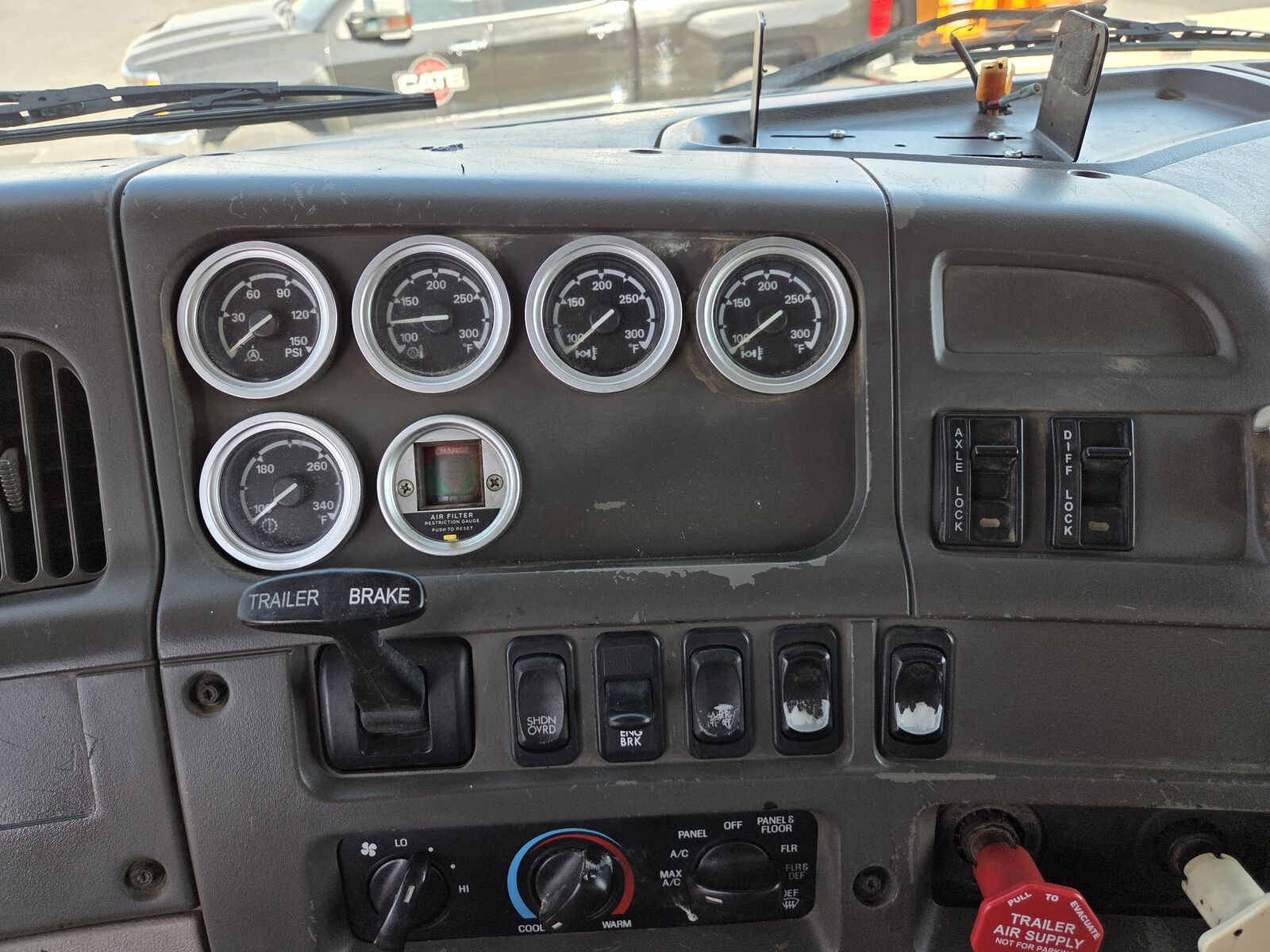 Detroit Series 60 14 L Diesel Engine, 14703 Engine hrs, Air Conditioner, Cruise Control, Power Windows, Engine Brake, Manual Transmission, Differential Lock, 18000 lb Front Axle, 46000 lb Rears, 86040 lb GVWR, Air Ride Cab, Aluminum Wheels, 385/65R22.5 Front Tires, 11R22.5 Rear Tires, 2 Steerable Air Lift Pusher Axle, Dual Steering Boxes, Rubber over Walking Beam Suspension, 240 in Wheelbase, PTO, 18 ft Long x 55 in High Steel Body, Pintle Hitch (Plumbed for Pup)