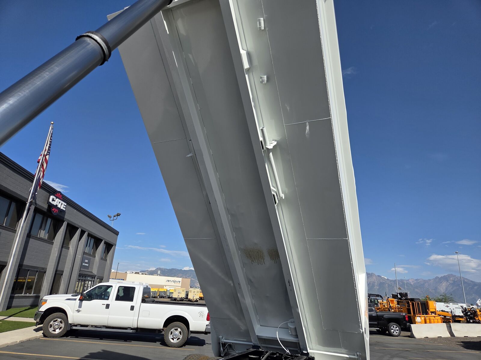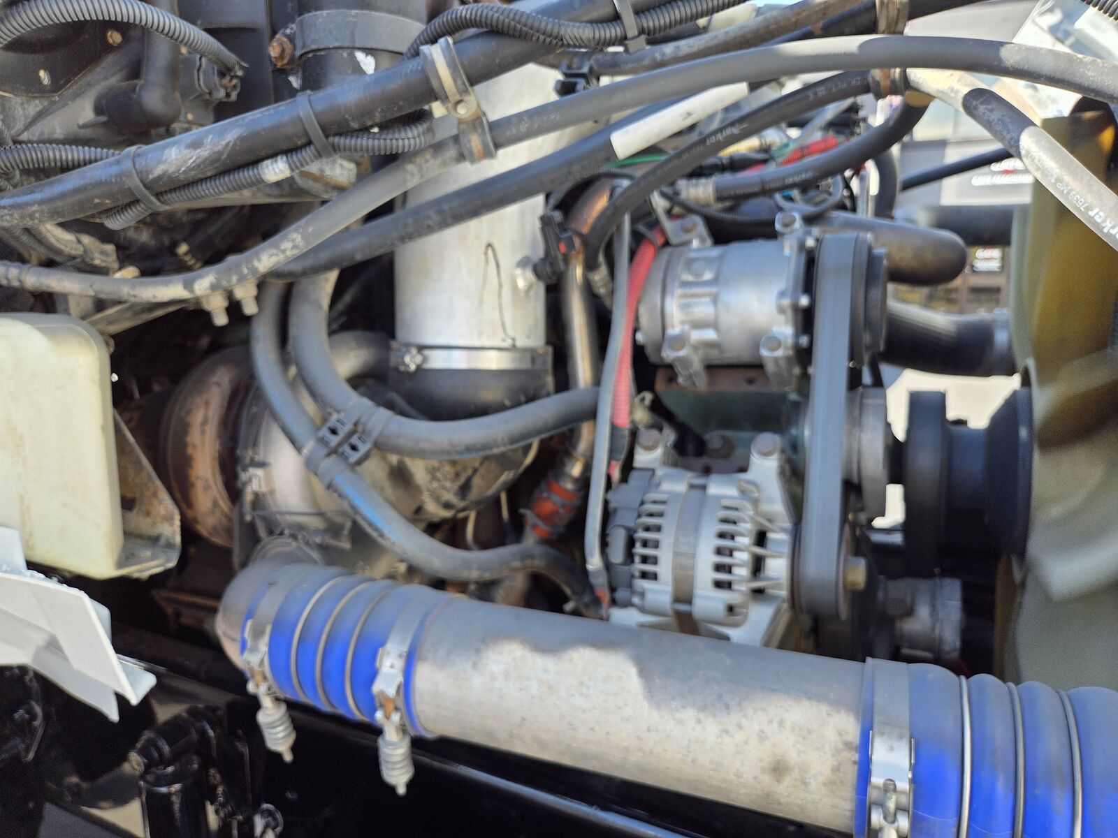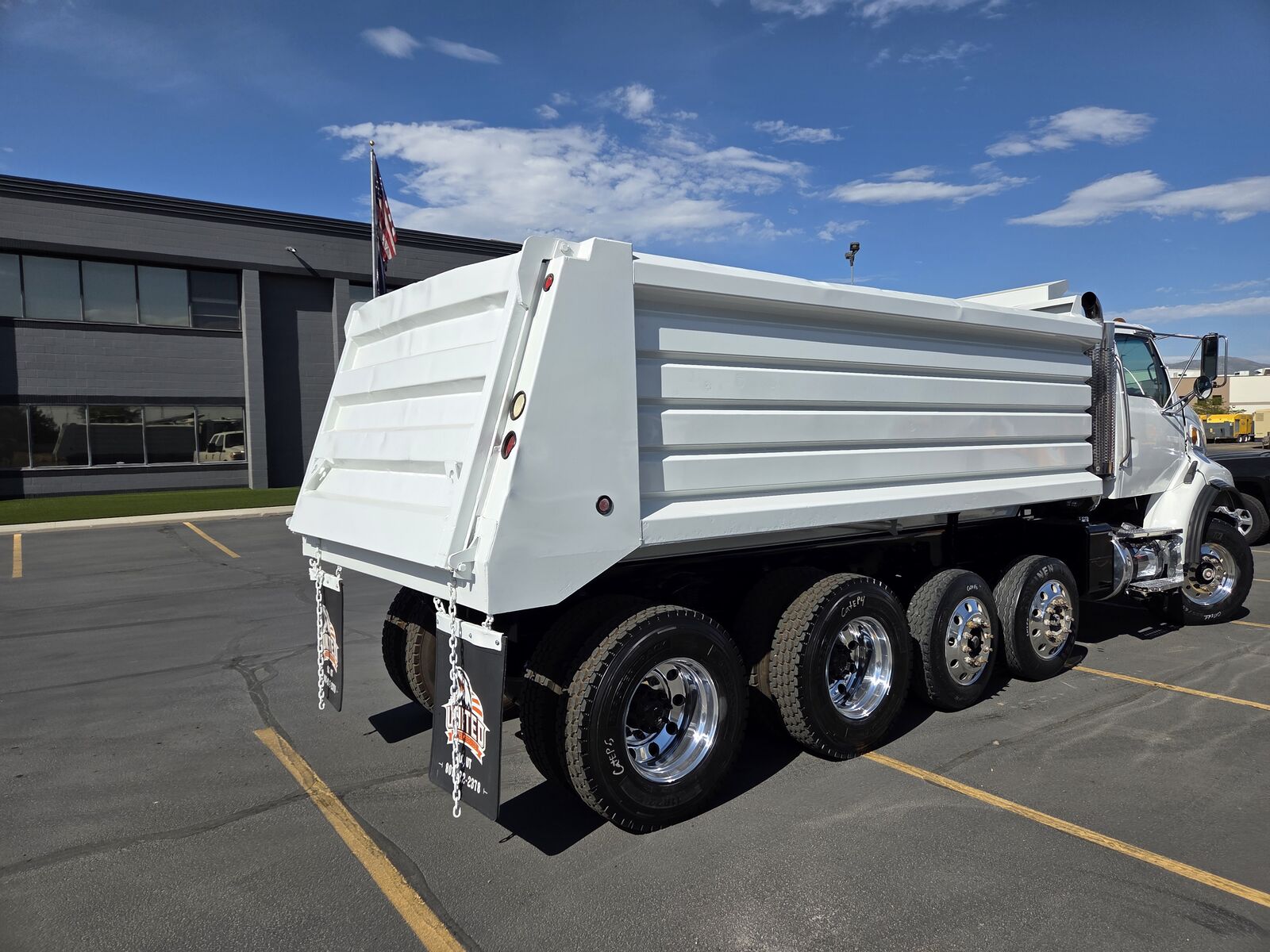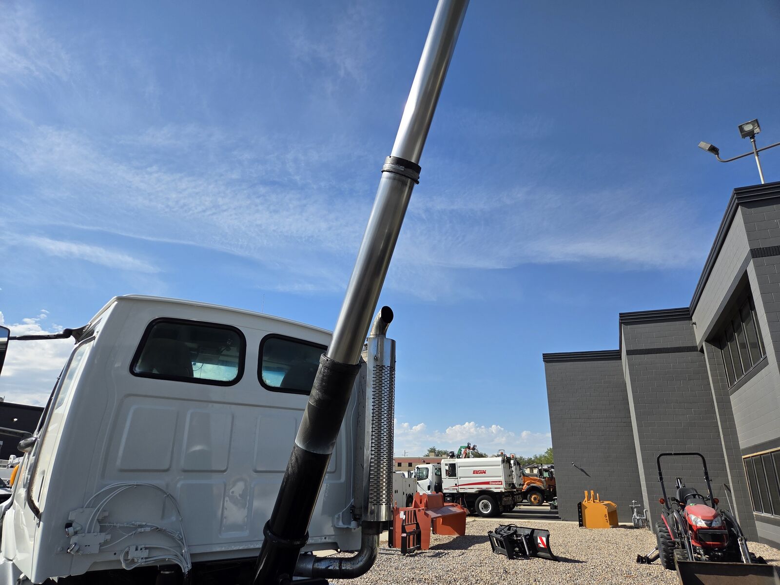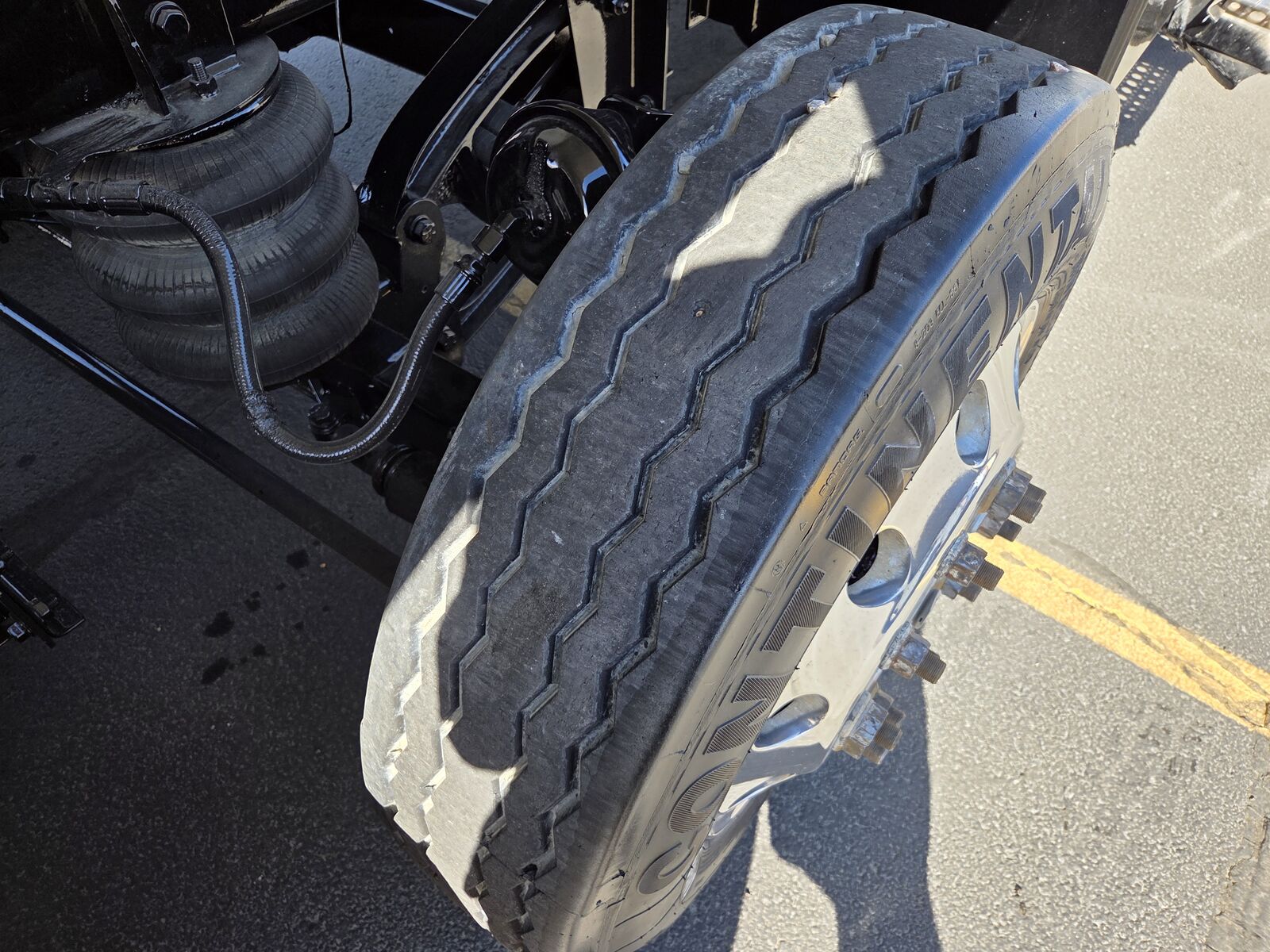 Detroit Series 60 14 L Diesel Engine, 14703 Engine hrs, Air Conditioner, Cruise Control, Power Windows, Engine Brake, Manual Transmission, Differential Lock, 18000 lb Front Axle, 46000 lb Rears, 86040 lb GVWR, Air Ride Cab, Aluminum Wheels, 385/65R22.5 Front Tires, 11R22.5 Rear Tires, 2 Steerable Air Lift Pusher Axle, Dual Steering Boxes, Rubber over Walking Beam Suspension, 240 in Wheelbase, PTO, 18 ft Long x 55 in High Steel Body, Pintle Hitch (Plumbed for Pup)