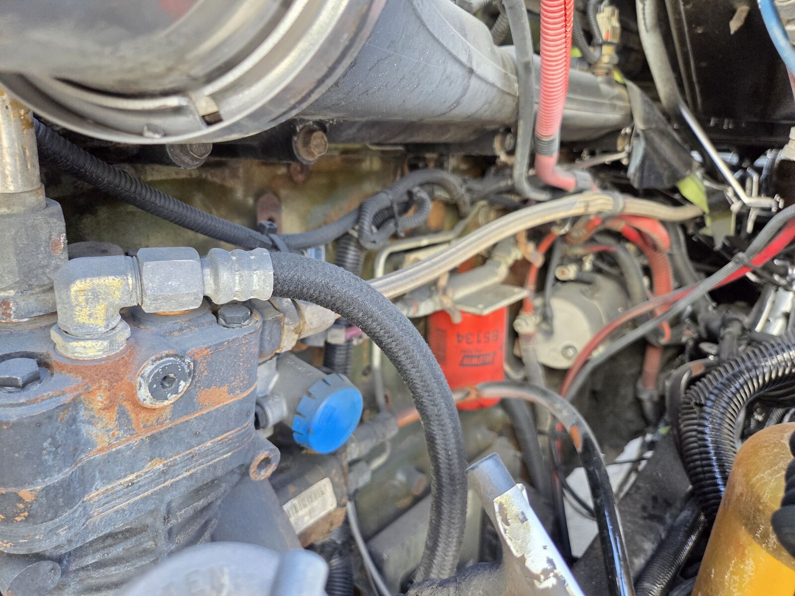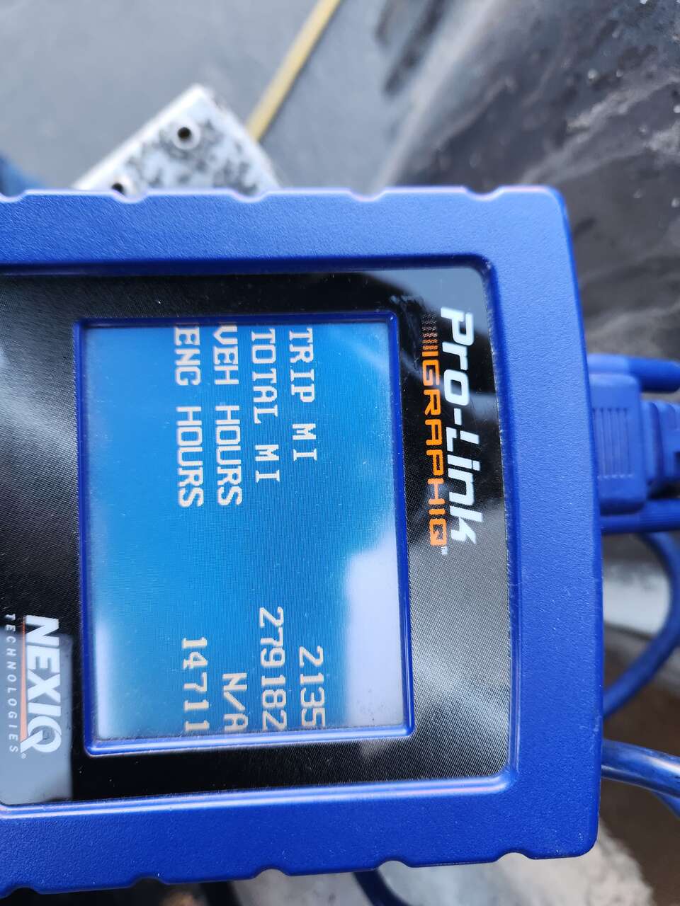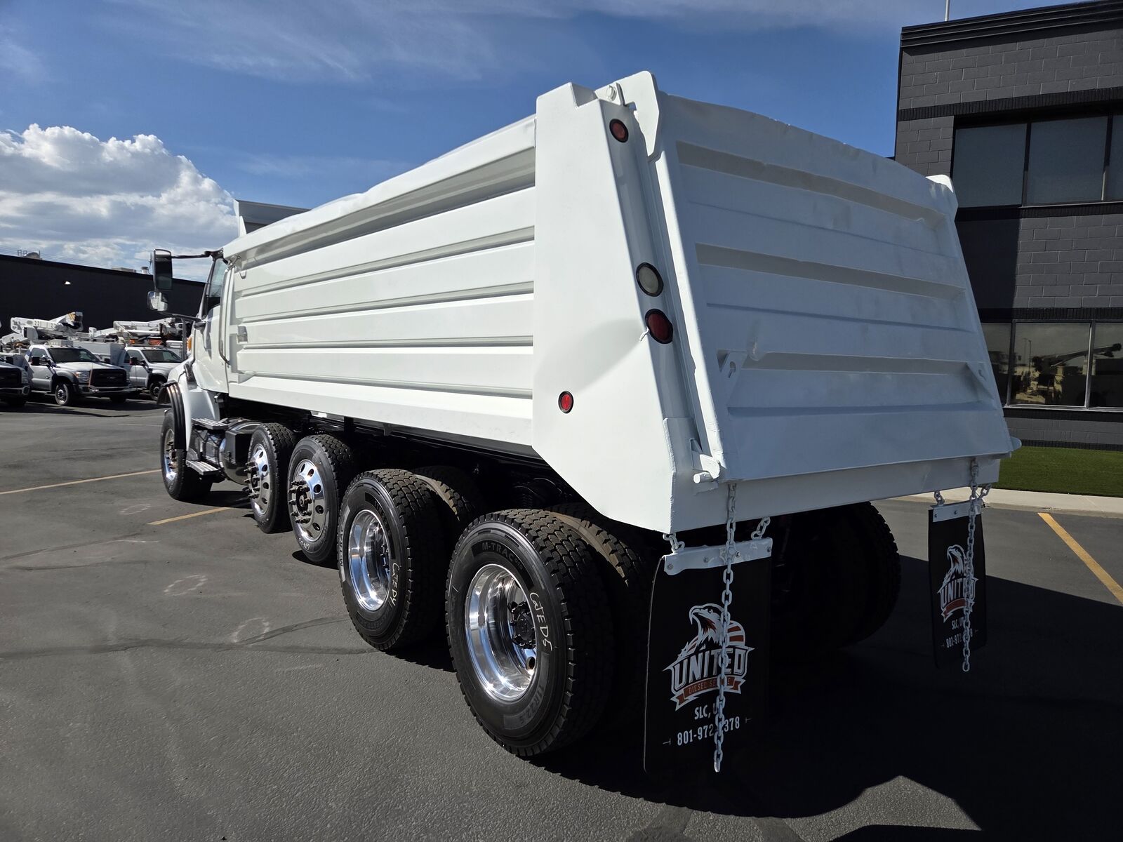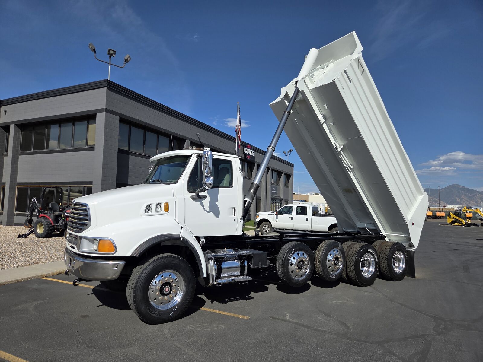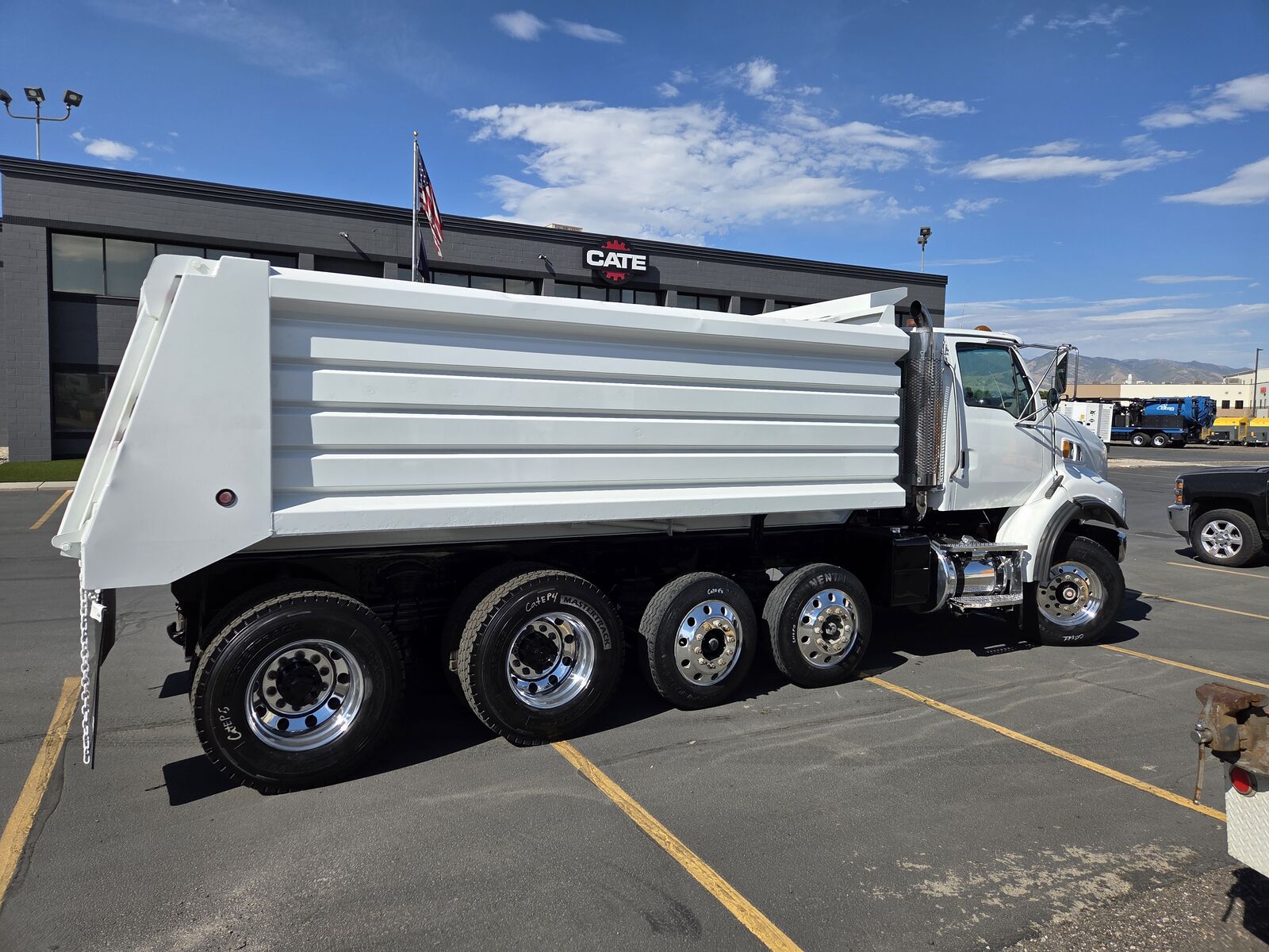 Detroit Series 60 14 L Diesel Engine, 14703 Engine hrs, Air Conditioner, Cruise Control, Power Windows, Engine Brake, Manual Transmission, Differential Lock, 18000 lb Front Axle, 46000 lb Rears, 86040 lb GVWR, Air Ride Cab, Aluminum Wheels, 385/65R22.5 Front Tires, 11R22.5 Rear Tires, 2 Steerable Air Lift Pusher Axle, Dual Steering Boxes, Rubber over Walking Beam Suspension, 240 in Wheelbase, PTO, 18 ft Long x 55 in High Steel Body, Pintle Hitch (Plumbed for Pup)