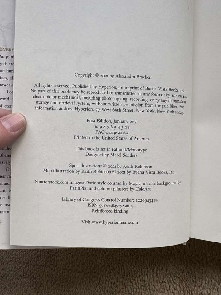 Lore: Bind Your Fate to Mine, by Alexandra Bracken. Hyperion, 2021, 466 pages. First edition hardcover in excellent condition, including dust jacket. Text only. Cash or Venmo.