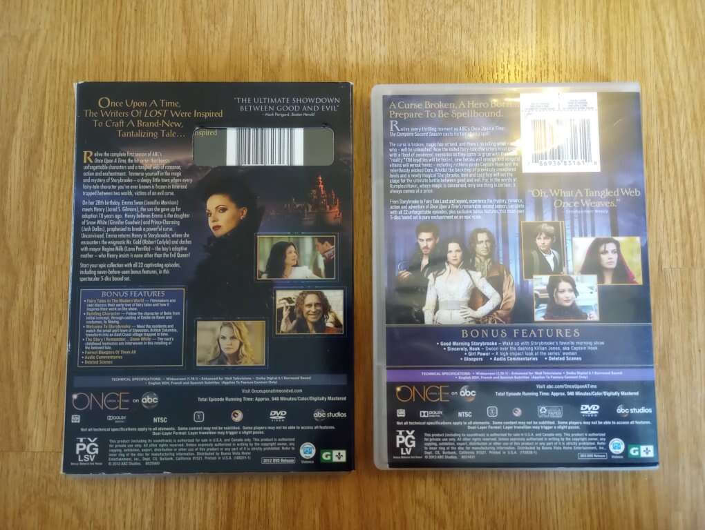 Once Upon A Time~ The Complete First & Second Seasons on DVD. Gently used and in great condition. From a pet and smoke-free home. $10 each or $15 for both. Cash or Venmo. Text if interested. Feel free to check out my other ads~I have a lot for sale.