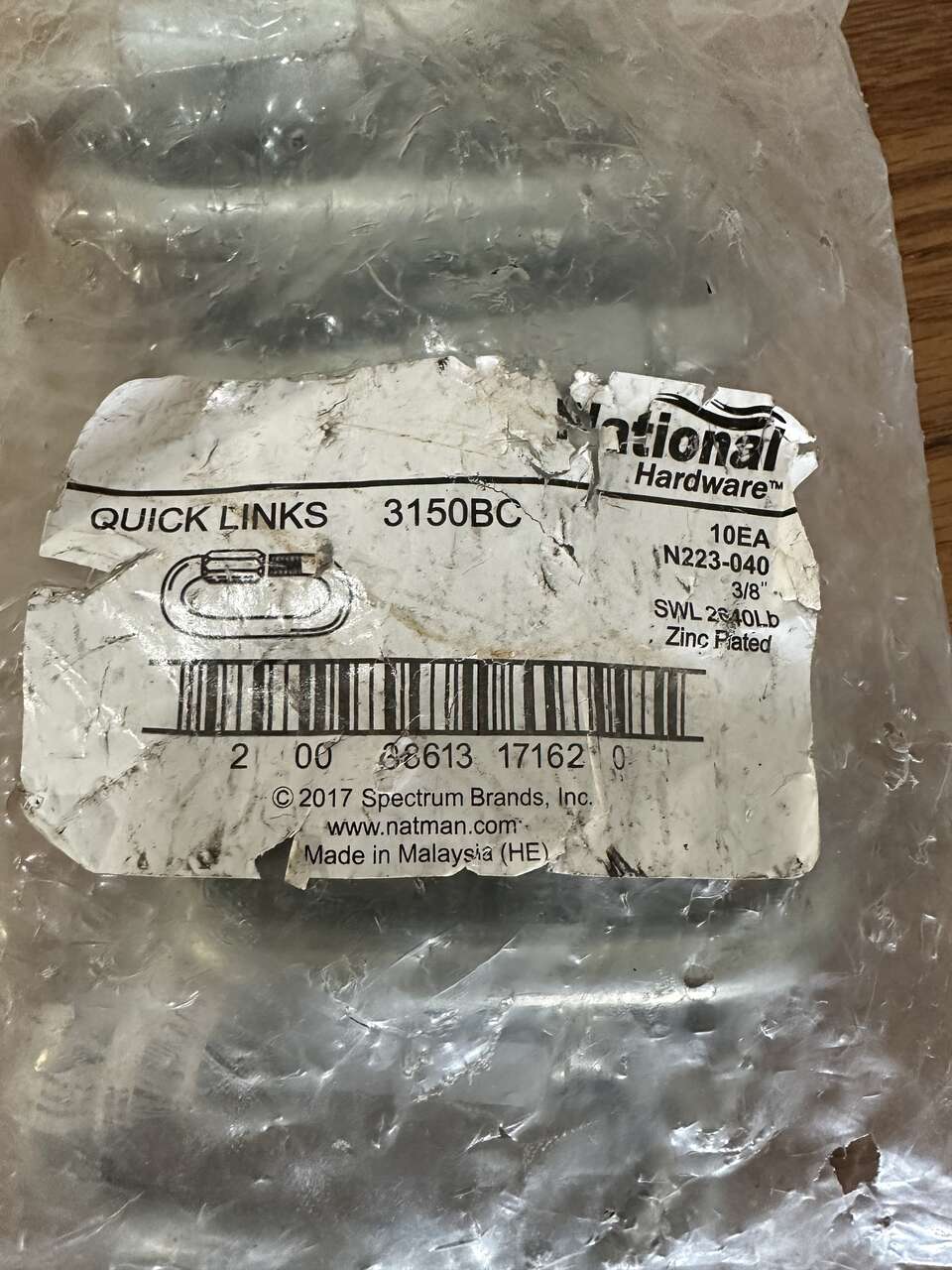 VenmoBrand new (10 pack) National Quick links. These are heavy duty 3/8" zinc plated links.