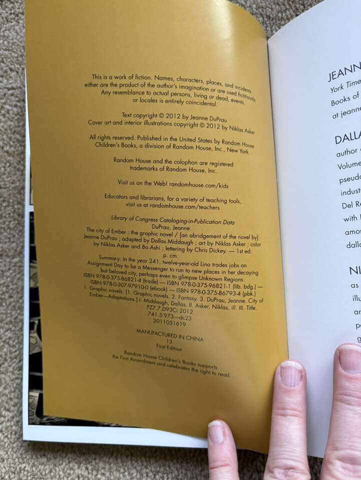 The City of Ember: The Graphic Novel, by Jeanne DuPrau, adapted by Dallas Middaugh, art by Niklas Asker. Random House, 2012. Sturdy paperback in excellent condition. Text only. Cash or Venmo.