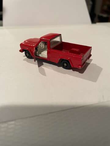 Lesney Matchbox Collectable: c.1964 Red Jeep Gladiator Pickup No. 71. This Jeep has been in my Private collection for over 50 years. Condition Like New. Features both Driver & Passenger door that open & close. I dont have the box. Please No-Out-of State inquires or buyers. The price ($) is Negotiable. Make offer. Thanks.