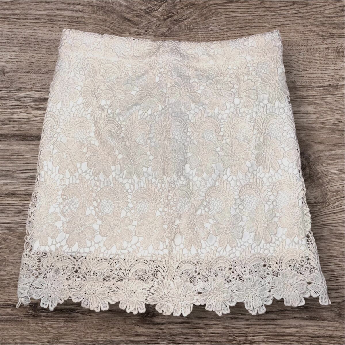 VenmoBeautiful textured lace with scalloped floral hem. Forever 21 ivory lace skirt with floral embroidered lace overlay and soft lining. Features intricate floral lace with raised embroidery and a beautiful scalloped hem with floral trim. Feminine, romantic style perfect for spring, summer, or cottagecore, boho outfits.