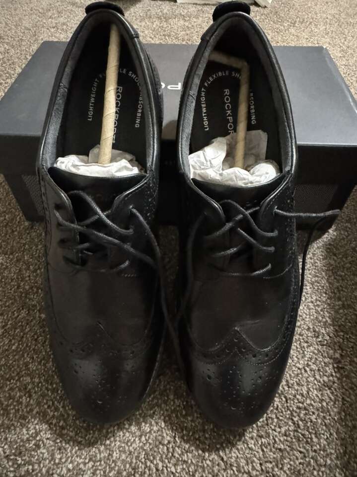 New in box black Rockport Wingtip dress shoes. Size 11M.