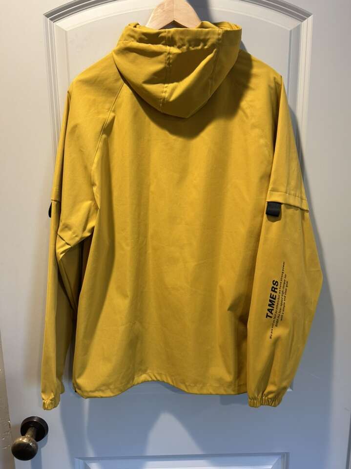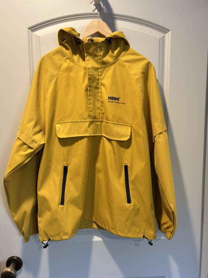 VenmoLike new mens size small (could be a medium) HBBR The Off World Turn Alloaone hooded jacket in mustard yellow. Function and fashion in one. Adjustable elastic and toggle around the waist and hood as well. Two side zipper pockets faux kangaroo pocket in the front and 1/4 zip down the front. Elastic wrist cuffs. Sleeve has screen printing in black TAMERS. Clean smoke free home. No flaws or defects. Cash or Venmo. Porch pickup from Alpine.