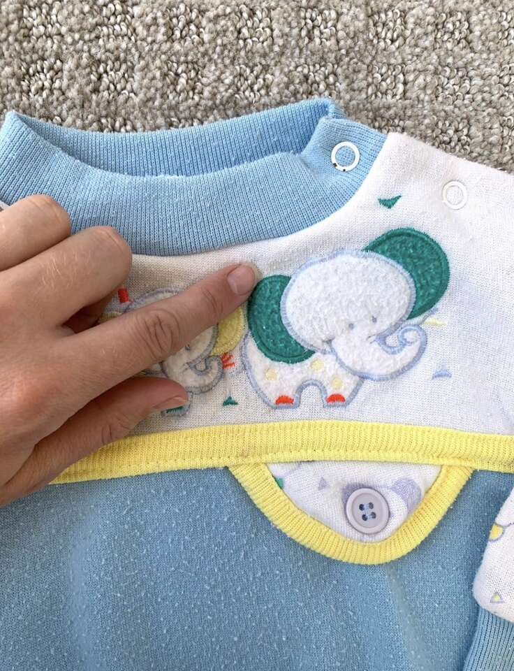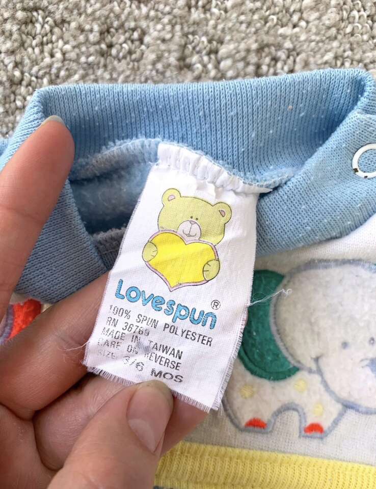 VenmoVintage Elephant Baby Sweashirt 3/6 Months This was my brother’s 30 years ago Great condition for its age Teeny tiny stain by the elephant and the back of the left arm cuff is slightly discolored. See pics. Neither of these are very noticeable. Cash or Venmo. Will hold with Venmo payment.