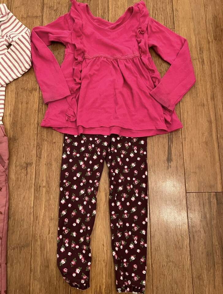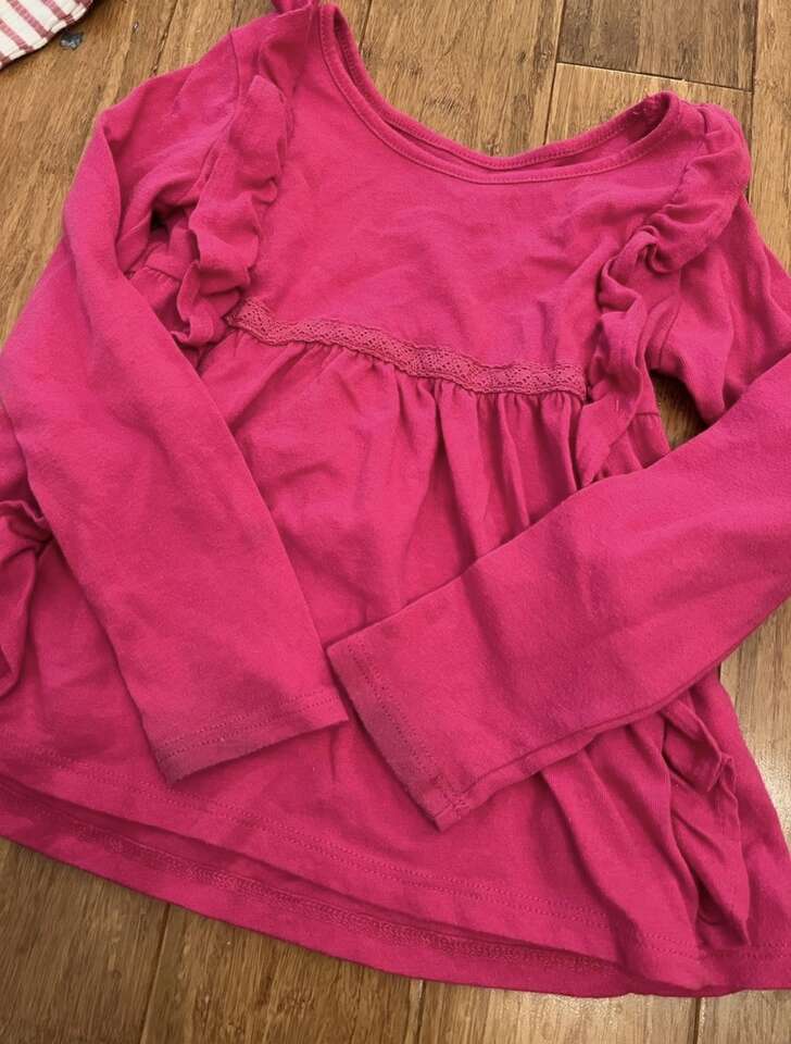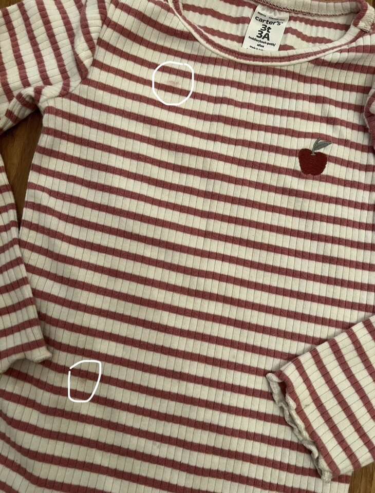 VenmoTwo 3T Outfits The white shirt has a couple very light stains circled in one pic and the pink shirt is just lightly dirty on the end of the sleeves. Nothing major. I don’t list things I wouldn’t still put on my kids, but price reflects these flaws. Cash or Venmo. Will hold with Venmo payment.