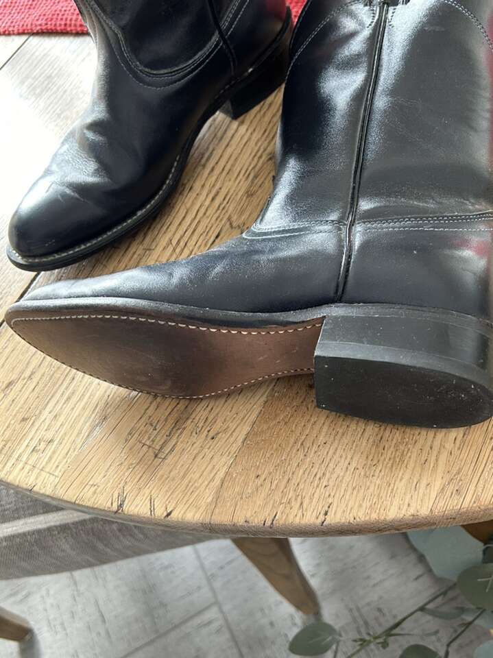 Laredo navy blue size 7 1/2 ladies leather boots, sole and heel like new, a few scratches on toe.