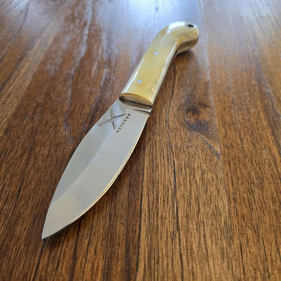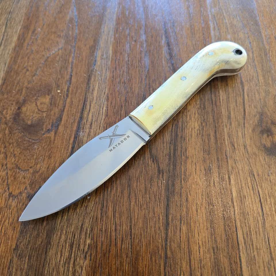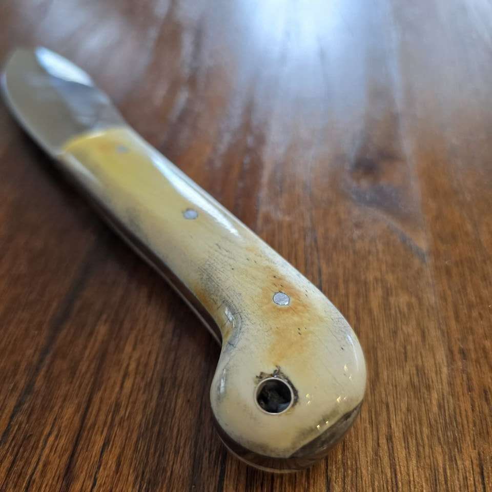 This version has a bone Handle. The curve at the bottom will give you great support for any use.