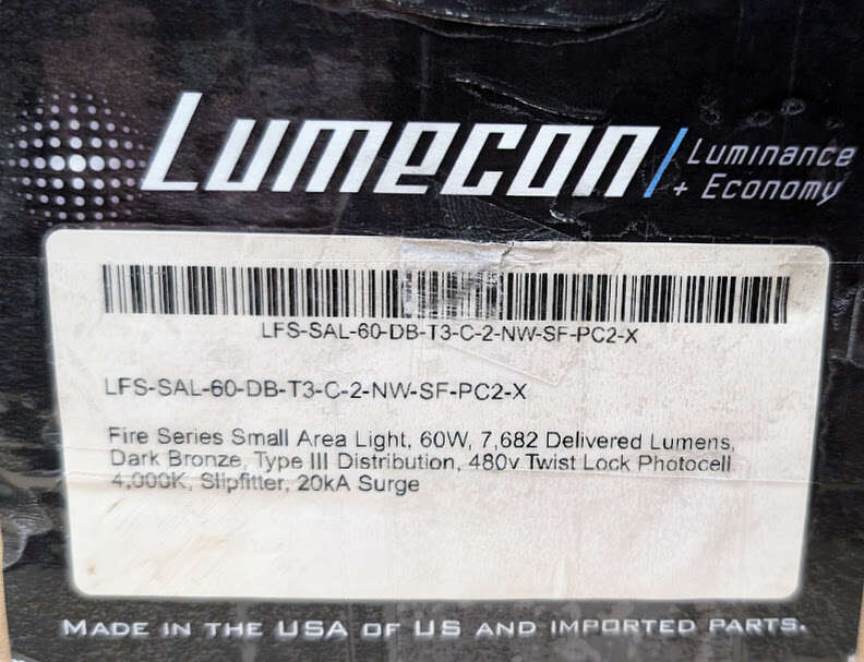 VenmoLumecon LDS-SAL Small Area LED Light for parking lots, pathways, tennis courts, Dark Bronze, 327v to 480volts, 4000K, with photocell