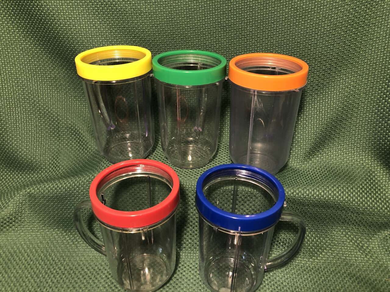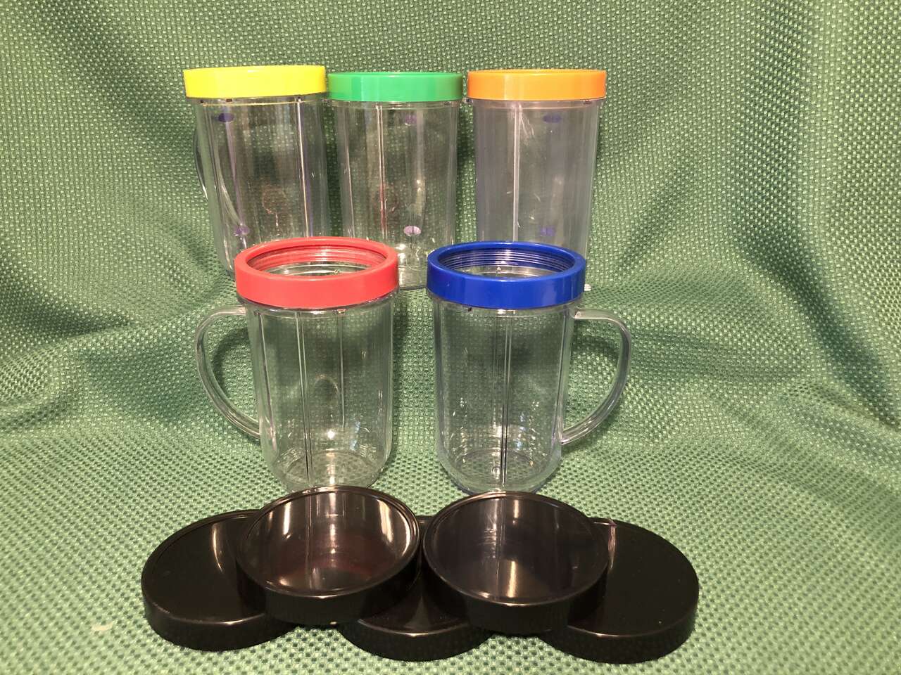 *5 16oz cups with handles and the colorful lip rings (which can be removed and replaced with any lid)