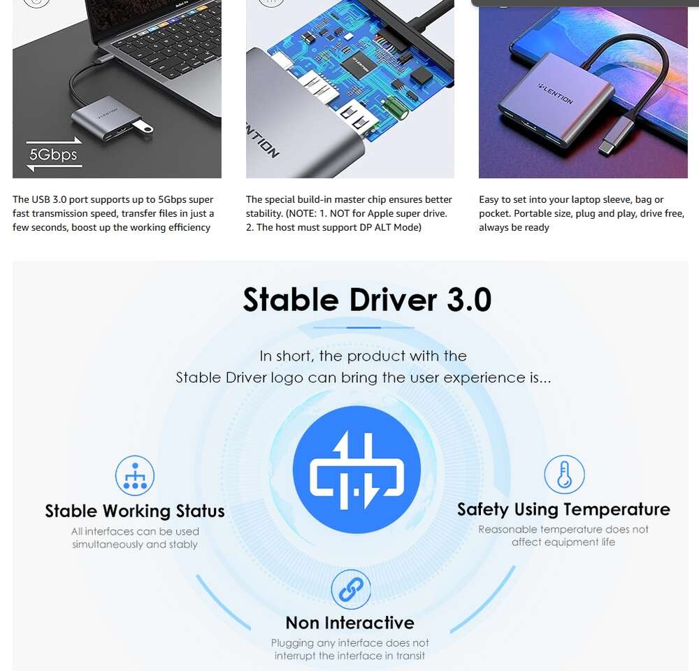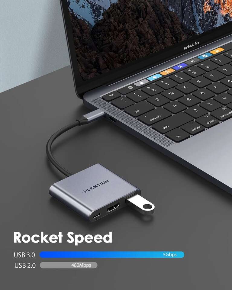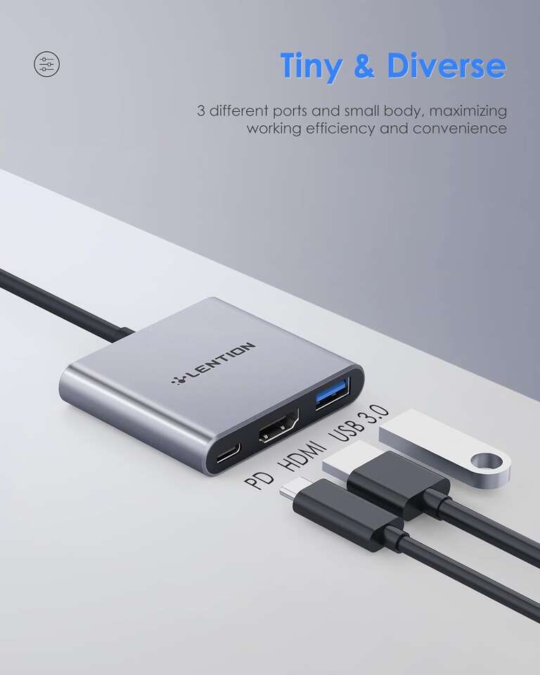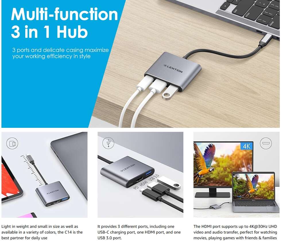 ZelleLENTION 3-in-1 USB C Hub with 100W Power Delivery, USB 3.0 & 4K HDMI for any computer, tablet, phone or similar with a USB-C port including Windows machines, MacBook Pro, New Mac Air/Surface/Chrome/Steam Deck, More, Stable Driver Adapter (CB-C14, Space Gray). Brand new in sealed package.