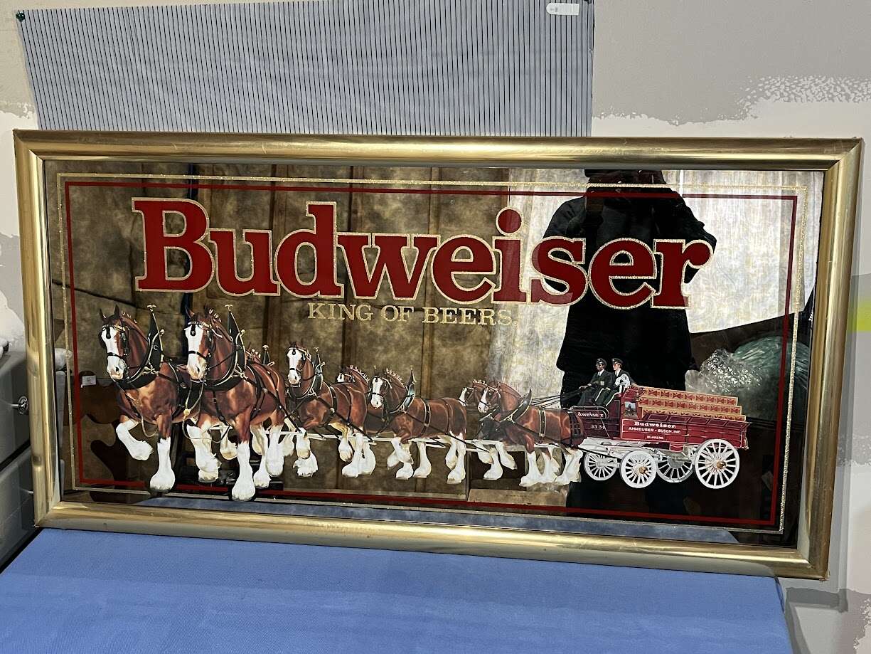 BUDWEISER King of Beers Bar Mirror, Clydesdale Horses 51x26 (1992)