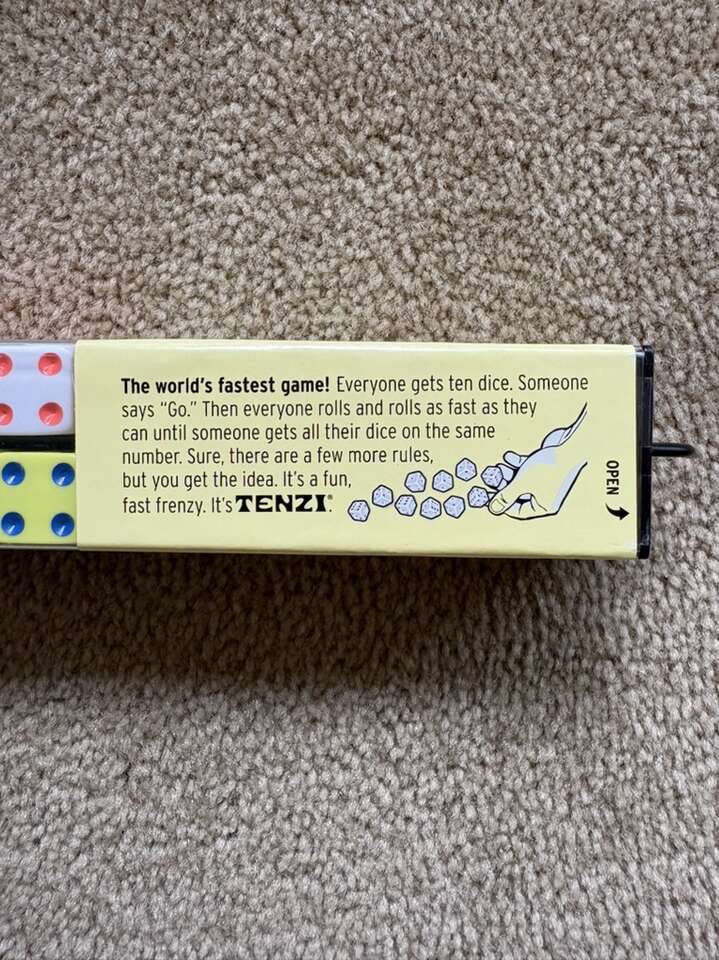 NEW (sealed) Tenzi Dice Game: It’s a fun fast frenzy! Carma Games, age 7+, 2-4 players. Award-winning game. New, unopened condition. Text only. Cash or Venmo.