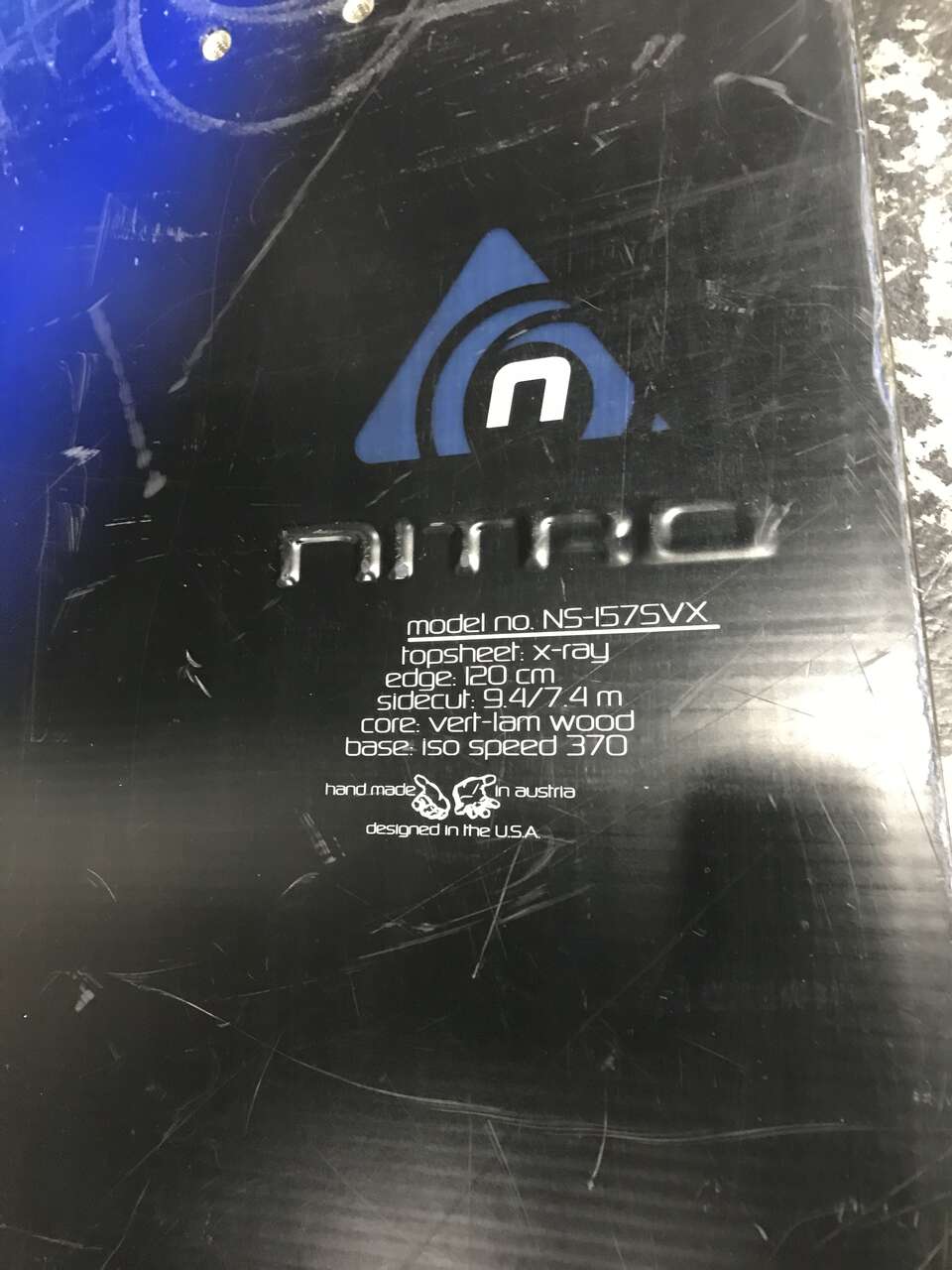 nitro storm VXY size is 157.5 cm it's got lots of scratches on the bottom and a ding in the nose that won't affect the ride but the price is right! Still has lots of life in it