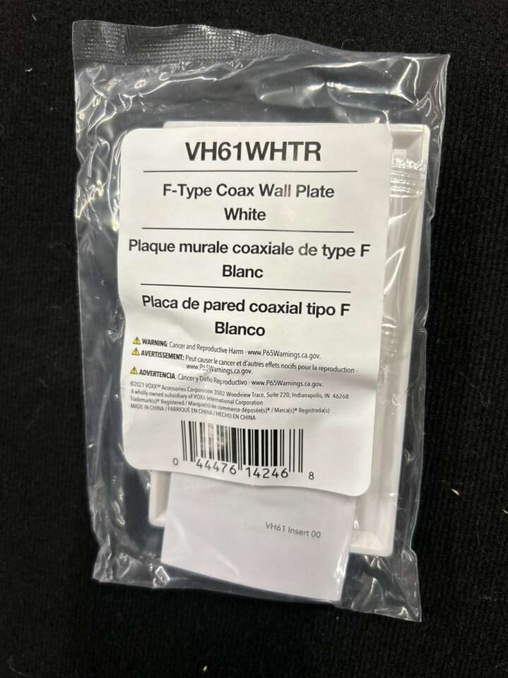 Description: Simplify your cable management with the VH61WHTR F-Type Coax Wall Plate, a sleek and durable solution for connecting your RG6 coaxial cables. This wall plate is perfect for home or office setups, providing a polished look while supporting televisions, satellite receivers, modems, and more. Easy to install and designed to last, it’s the perfect addition to your cable system.