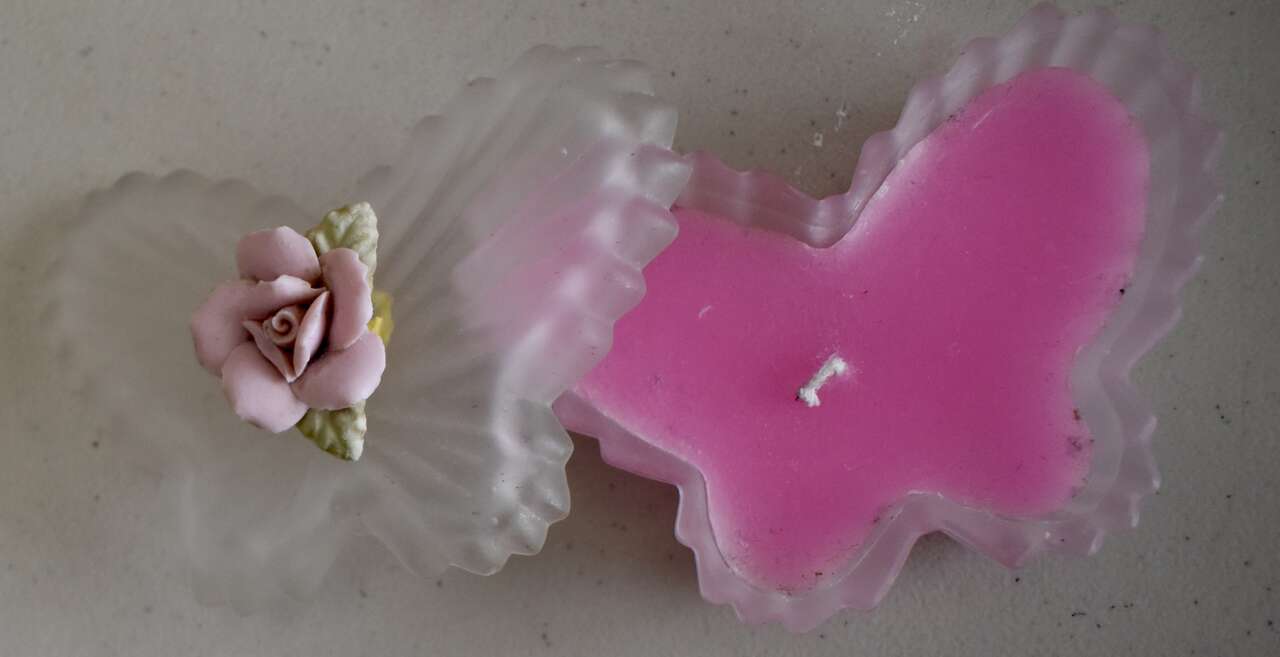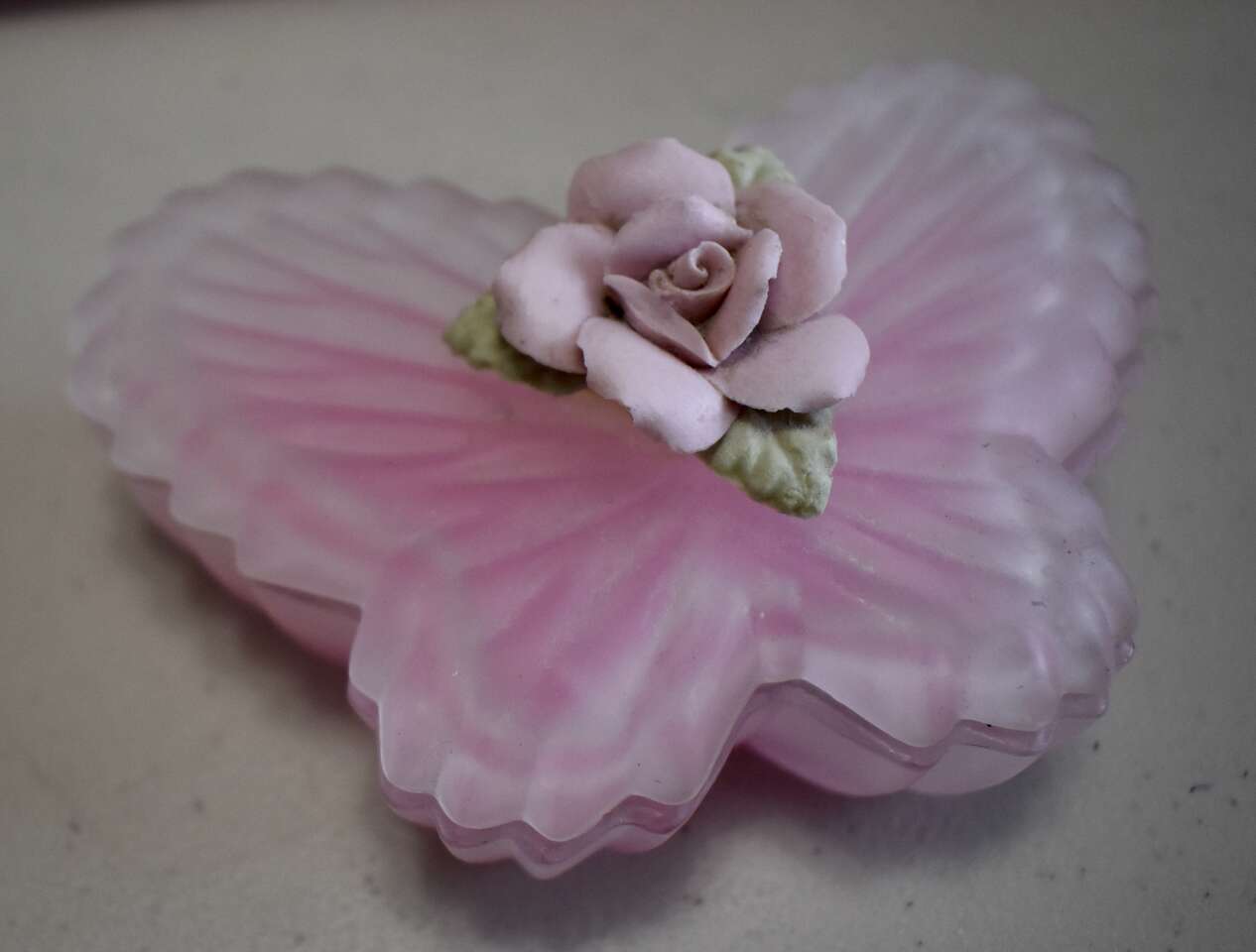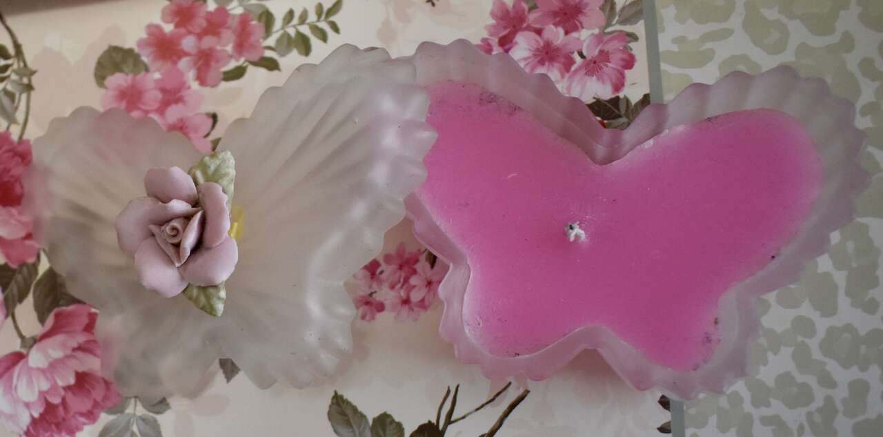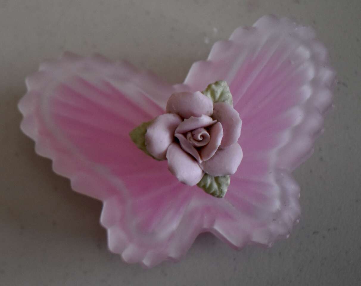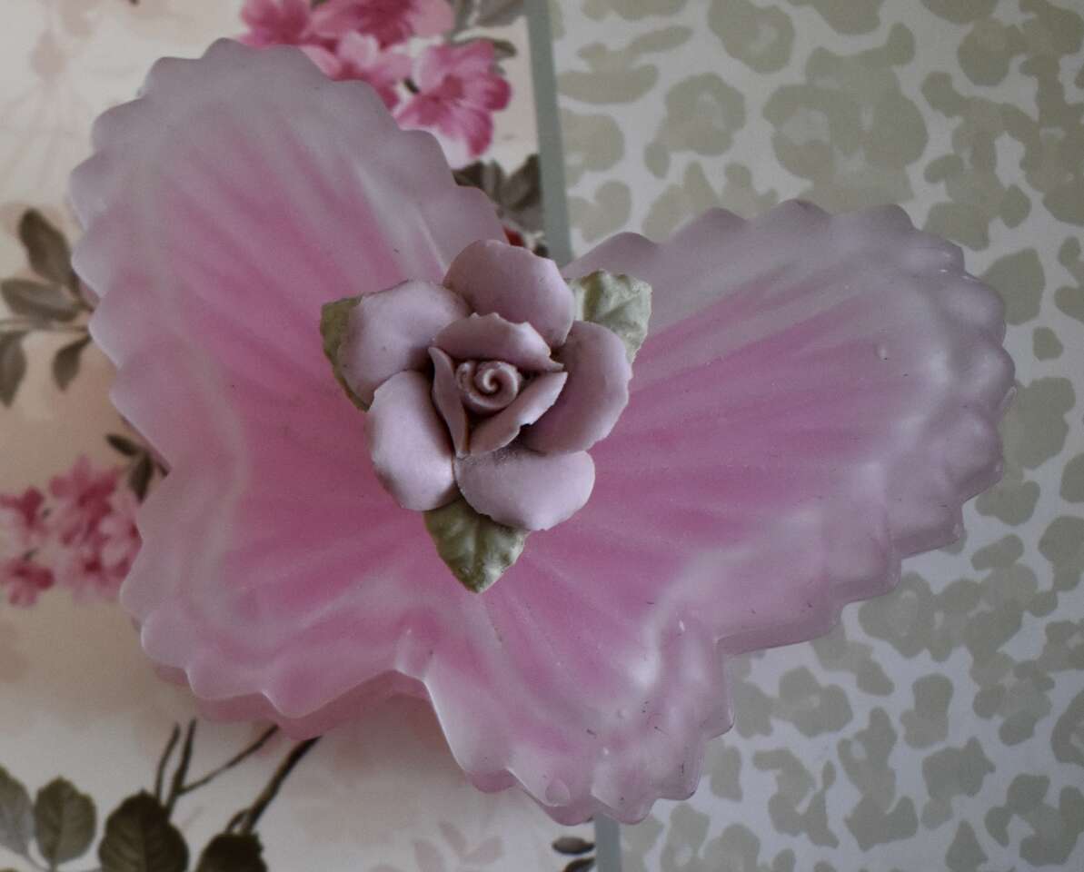 **IT MEASURES…**APPROX. 4 1/2 inches wide at the widest part of the wing of the butterfly shape and it is approx. 3 inches long measured at the longest area of the butterfly dish shape.