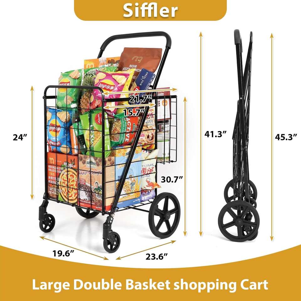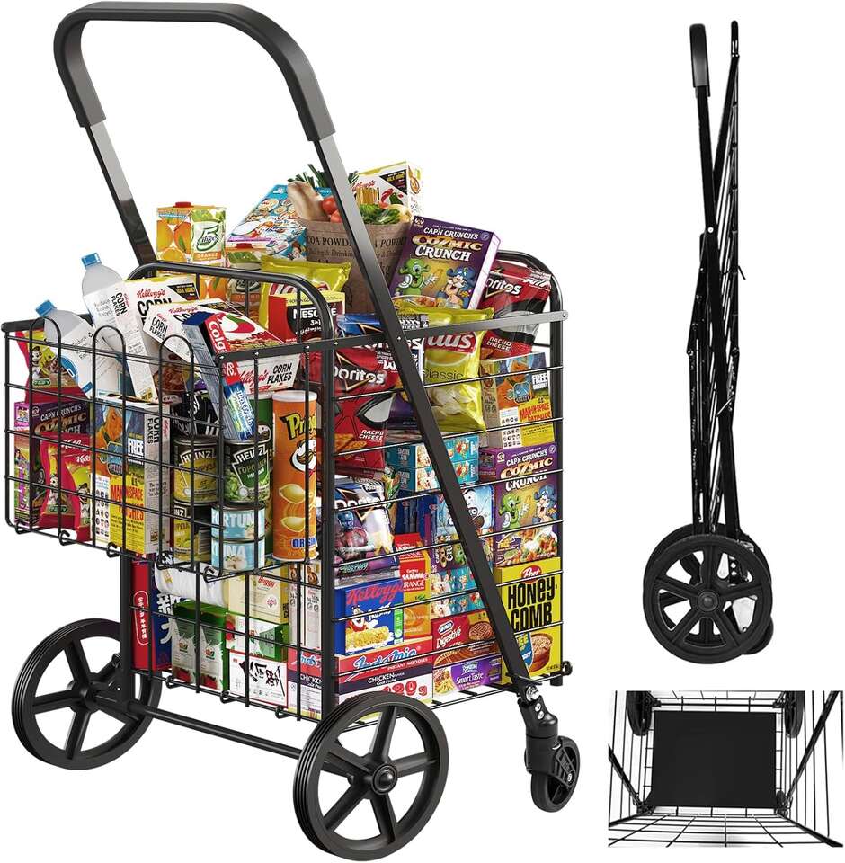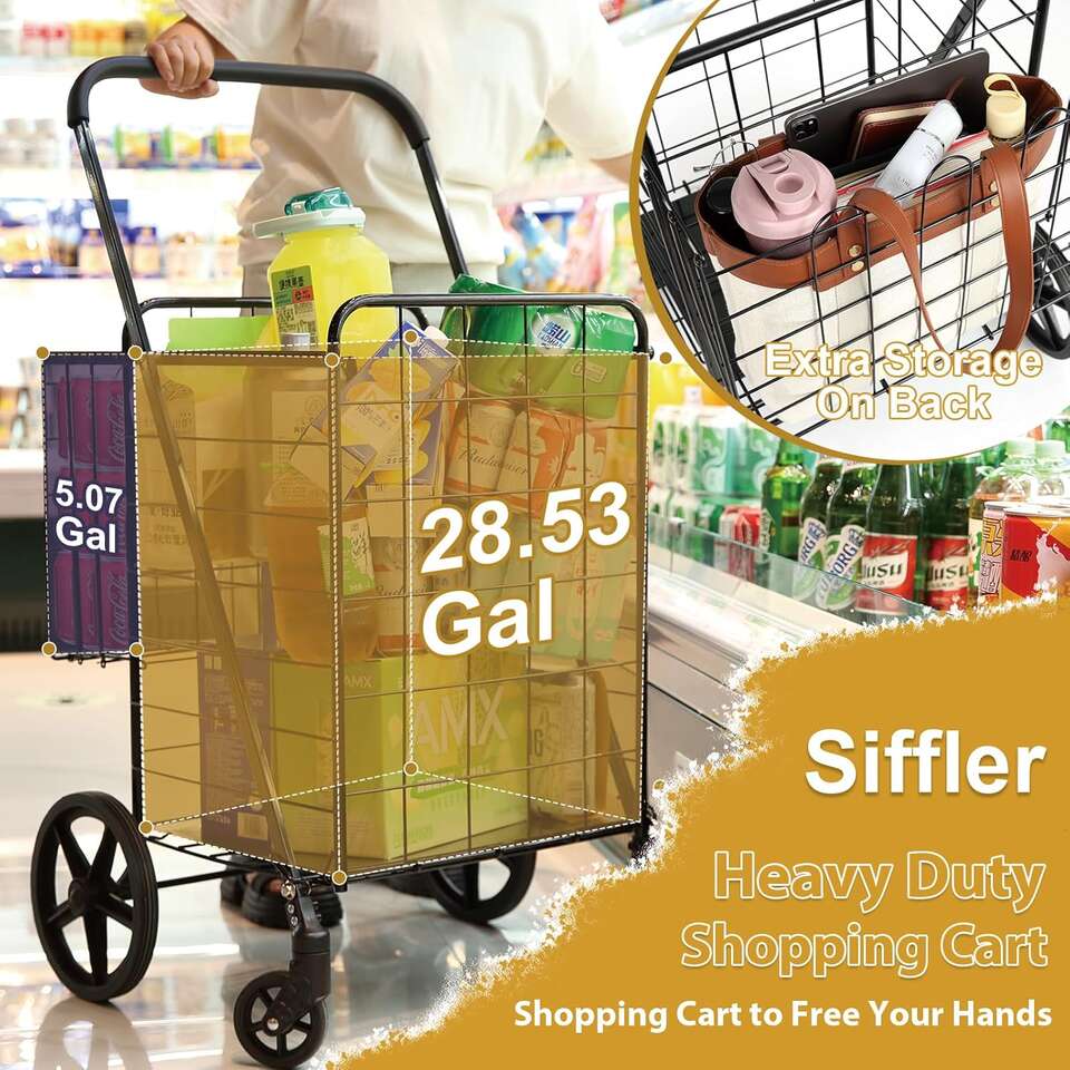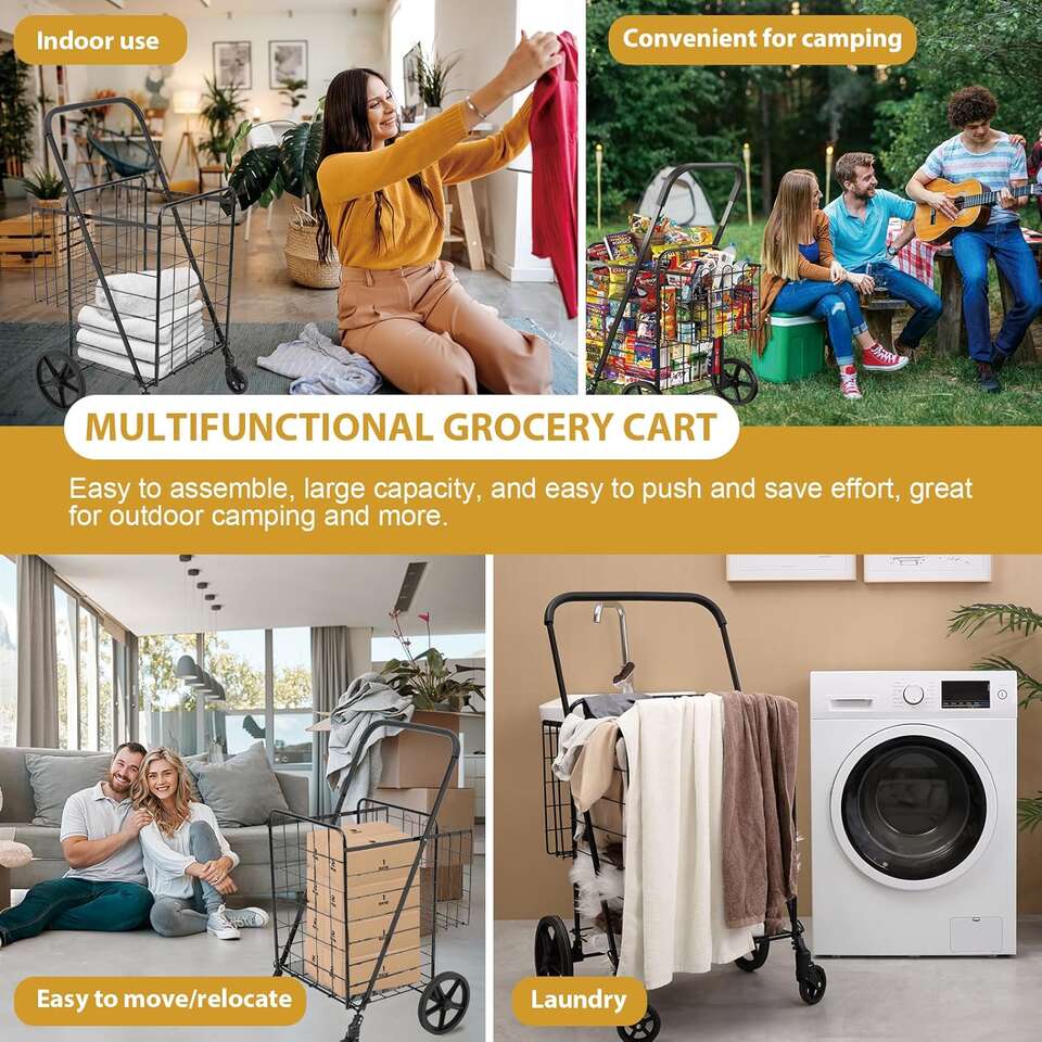 Retailer's Title: Upgrade Shopping Cart for Groceries, 360° Swivel Wheels Folding Cart Heavy Duty Utility Cart with Large Capacity Easily Collapsible Trolley Cart for Laundry, Groceries, Travel (Black, Large)