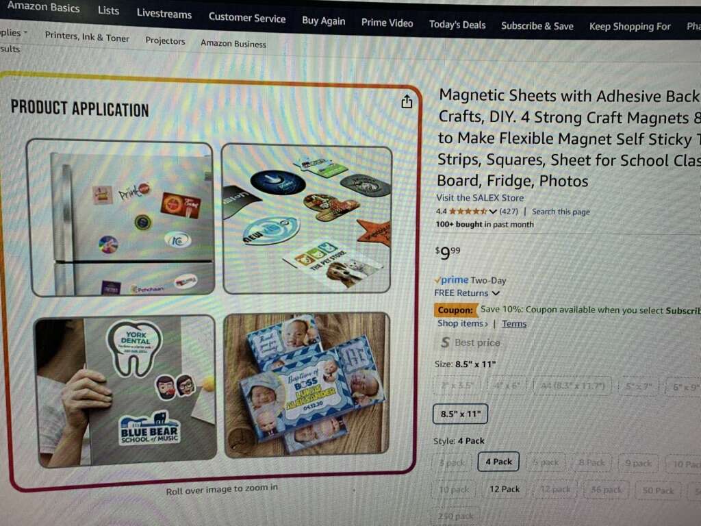 Venmo These are 8 1/2 inch by 11 inch magnetic sheets. Perfect for DIY projects. Strong craft magnets to make flexible, magnet self sticky, tape tapes, strips, squares. Perfect for hanging pictures on the refrigerator or whatever projects you’ve got. Asking two dollars each or 20 for $20. 150 available