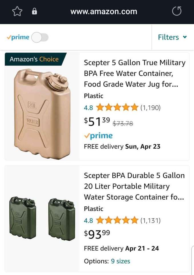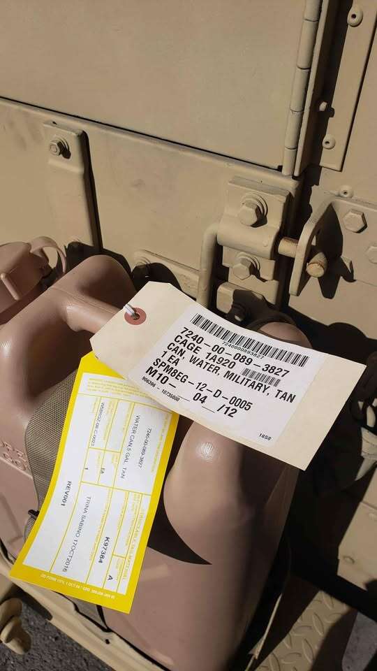 Brand new scepter water cans with the tags still on them. Genuine US cans, not Chinese reproduction units. Great for camping, emergency preparedness, rafting, overlanding, or anything outdoors. They also fit military jerry can mounts perfectly. Some cans do have wear on the outside but do appear to be new, with the plastic shavings from the cast molding process still inside the containers. LIMITED QUANTITY AVAILABLE.