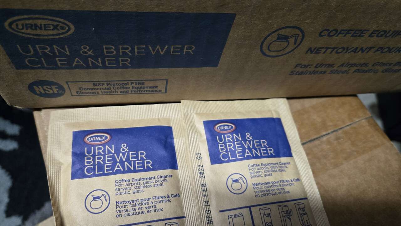 Included FREE: FREE: FREE: 1 New Glass Pot + 1 New Brew Basket + 12 packets Urn Cleaner