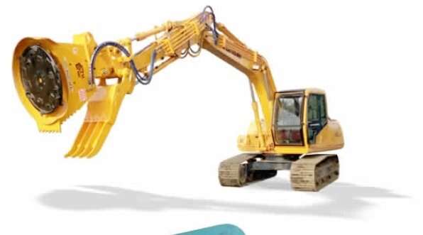 Installed with the optional and interchangeable "S-7" mulching disk, the XL480 becomes more efficient in larger material capable of a steady diet up to eight inch diameter with an occasional larger stem. The tilt mount and integration with an existing hydraulic thumb are productive options on this model.