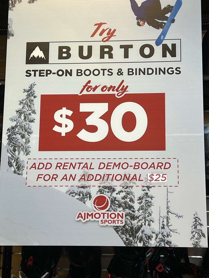 ApplePayNew at AJ Motion Sports Union Square - the largest ski & snowboard demo center in SLC - try out any 2025 new demo snowboard for just $25. Just bring your own boots in good condition in, and we will set you up to try out this year's best skis. More info at this link below. Credit Card deposit required, and you must be over 18 years old (or bring in a parent). If you damage the ski, you buy it, so please be careful.