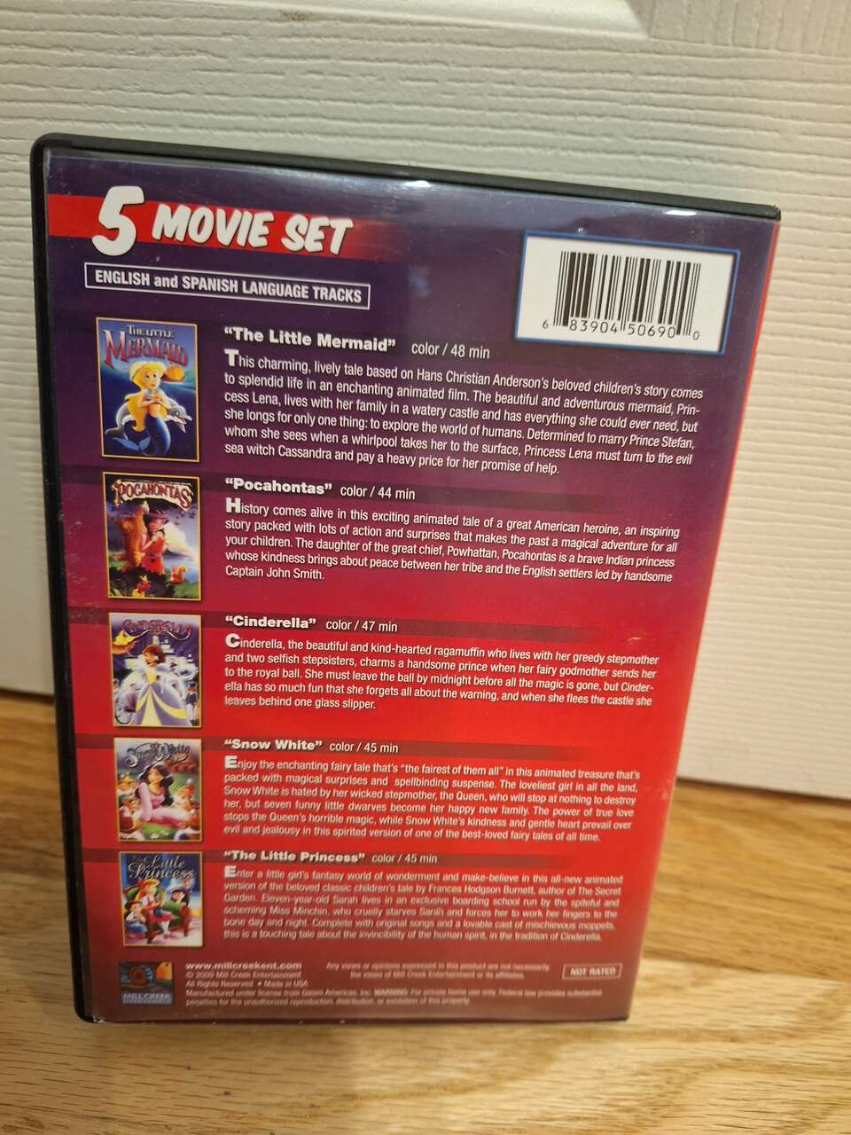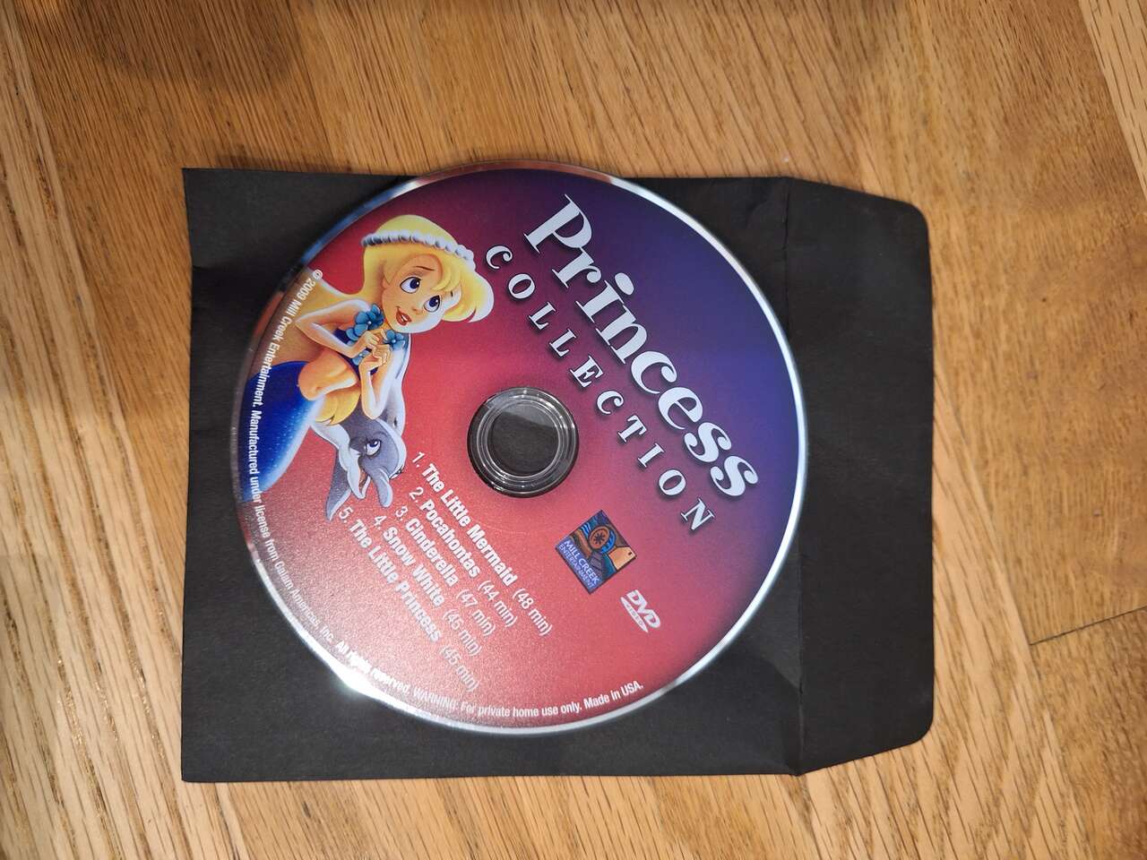 VenmoFor sale is a cute little Princess DVD Movie set. Includes 5 cartoon versions of Disney classics. Snow White, the Little Mermaid, Pocahantas, The Little Princess, and Cinderella. Great shape. Fun to see the shows with different cartoons than the original classics. Smoke free pet free home.