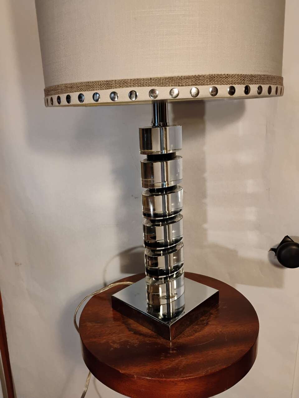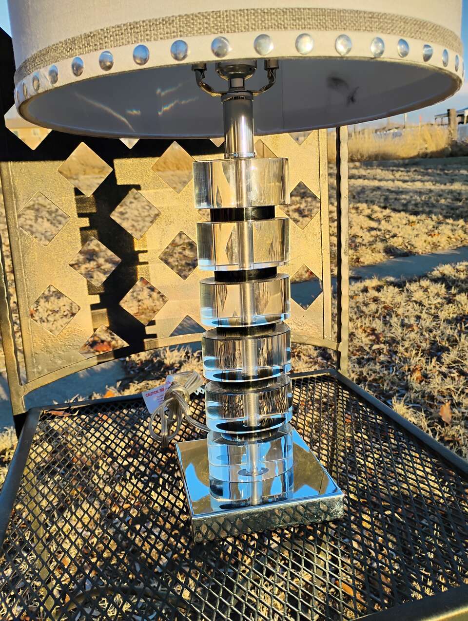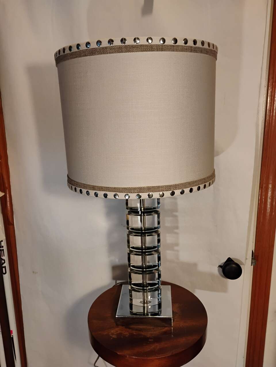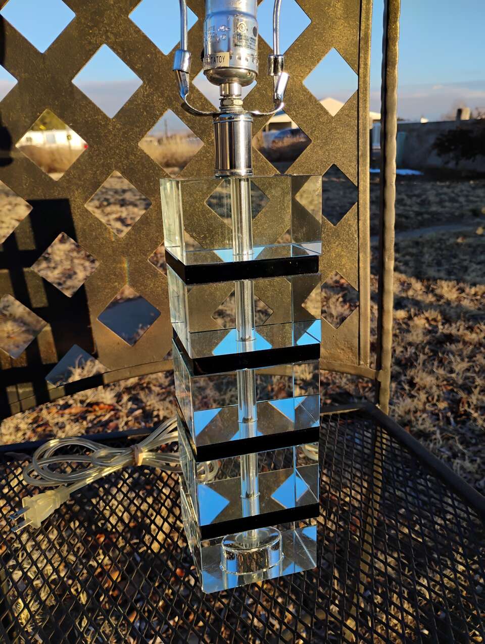 VenmoContemporary style. Oval 3.5" with chrome base and shade. Square glass 3.5" clear and black with chrome. Both just beautiful lamps. $50 each. Well below retail. See all pics.