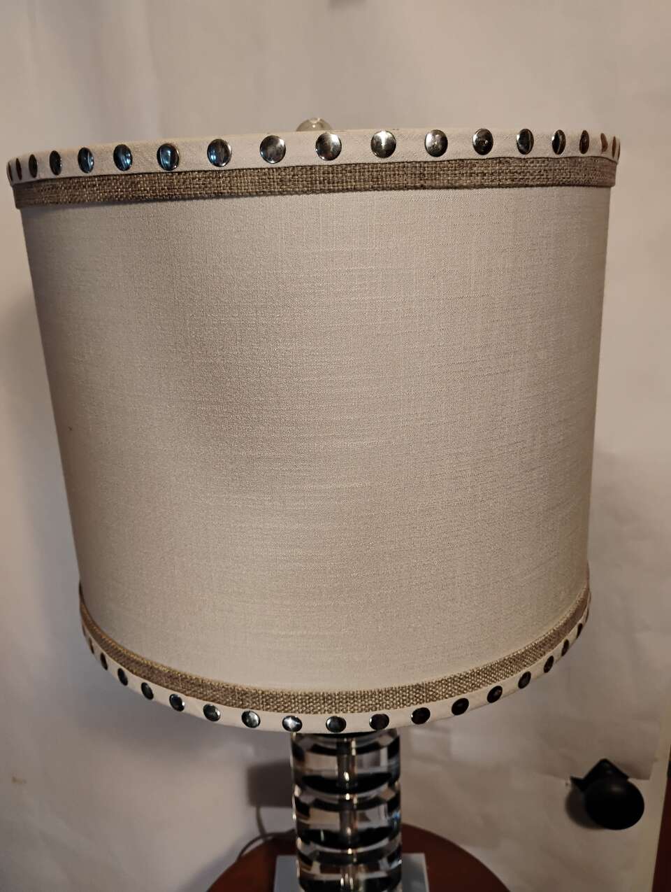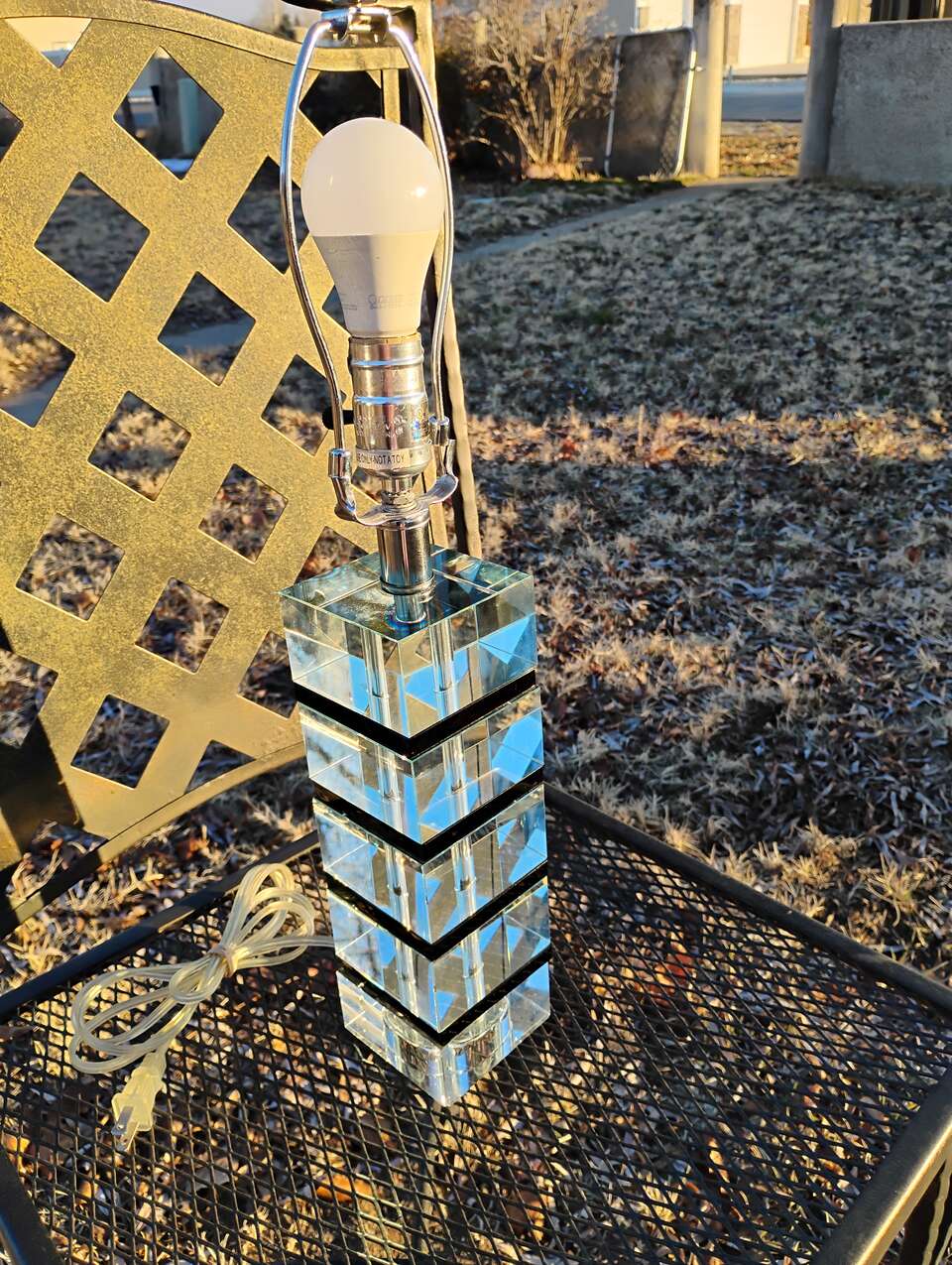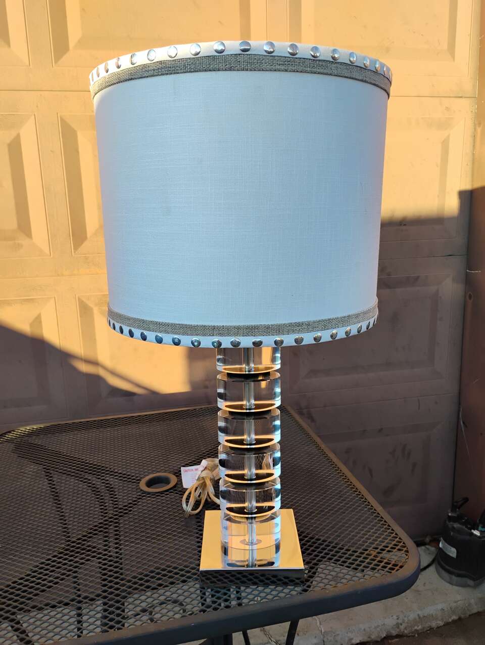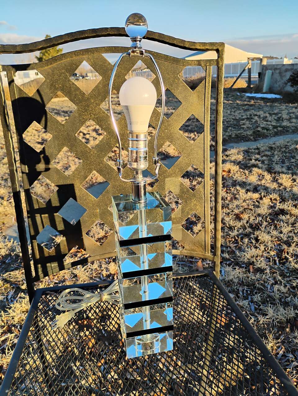 VenmoContemporary style. Oval 3.5" with chrome base and shade. Square glass 3.5" clear and black with chrome. Both just beautiful lamps. $50 each. Well below retail. See all pics.