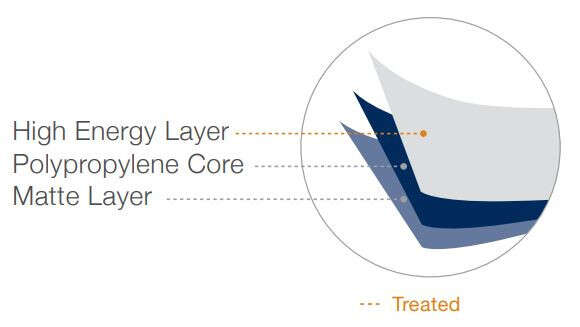 Consider it Essential. PlatinumOPP™ 68 ga Matte Film is a print web film that includes no adhesive layer, which makes it ideal for creating cost-effective, non-reflective matte prime labels and flexible packaging. This film helps protect printed designs from grease, dirt, moisture, and many other types of damage while enhancing the visual appeal of the application in even the brightest of settings. Made of biaxially oriented polypropylene (BOPP), PlatinumOPP 68 ga Matte Film is highly malleable and suitable for a broad range of applications, including labels, stand-up pouches, stick packs, and more. Prime label converters must use wet lamination and UV or LED curing to apply this film as it includes no adhesive layer. For flexible packaging applications, it is compatible with solventless, solvent-based, and water-based lamination and can be reverse printed.