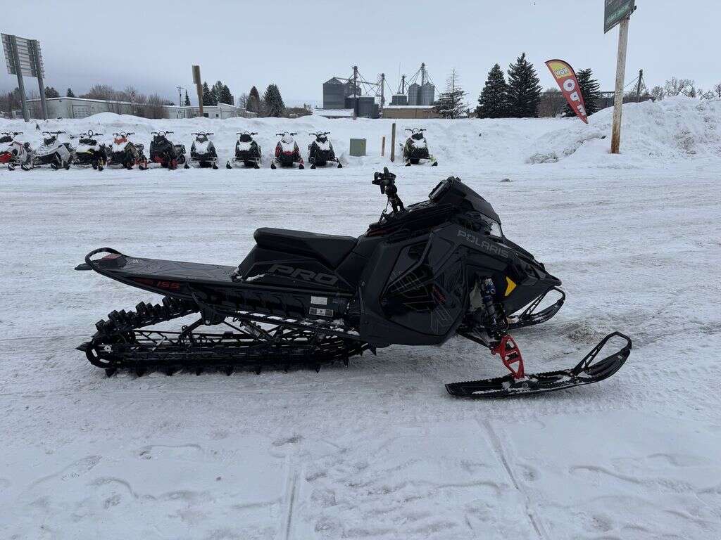 Give us a call or stop by! Electric start with 7s. 1,294 miles. 100 hours 2023 Polaris® Patriot 9R PRO RMK Slash 155The World's Most Capable Mountain SledFeatures may include:Ultimate LiftThe Matryx Slash features a lightweight, tapered tunnel delivering unrivaled traction and lift in all conditions.RMK React SuspensionThe RMK React Suspension provides riders with the most precise and effortless ride in the deep snow. Effortlessly initiate sidehills and experience less fatigue with the most predictable ride. It includes a 36"-38" stance, a sway bar designed for predictable handling, and forged a-arms and spindles optimized for strength and durability.PRO RMK Rear SuspensionThe lightweight, rigid rear suspension design features revised geometry to control pitch. This improves weight transfer, delivering better control and a more compliant ride. The rigid suspension delivers power directly to the snow. Off-trail, riders will notice improved weight transfer while maintaining the approach angle. On-trail, riders will notice a more compliant and comfortable ride. The rear suspension features a rail design that helps lift the rear skid while driving it forward.Ultimate ControlThe slashed and tapered tunnel features drastically improved snow clearance, minimizing drag and maximizing control on the most insane slopes. A new centralized, lightweight cooling system, bonded carbonfibre and aluminum-forged components significantly cut the real-world weight of the sled, maintaining the highest level of flickability and delivering class-leading power to weight ratio.Centralized Cooling SystemThe lightweight cooling system reduces ice and snow build up, working with the short, tapered tunnel. Not only is the dry weight reduced, the real world weight of the sled through the snow is reduced.Walker Evans Racing SuspensionThe PRO RMK Slash is equipped with premium Walker Evans Racing Velocity shocks for superior control and precision in steep and deep terrain.